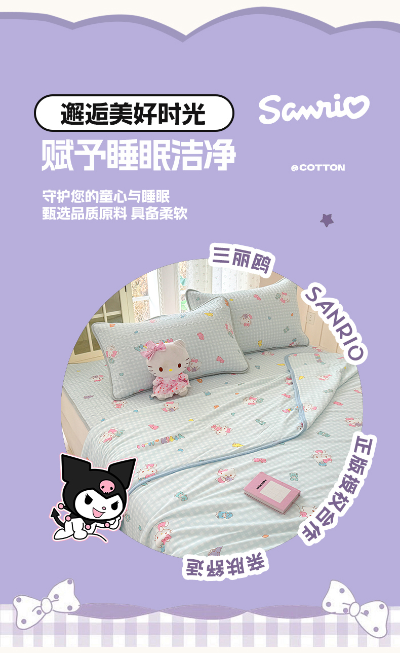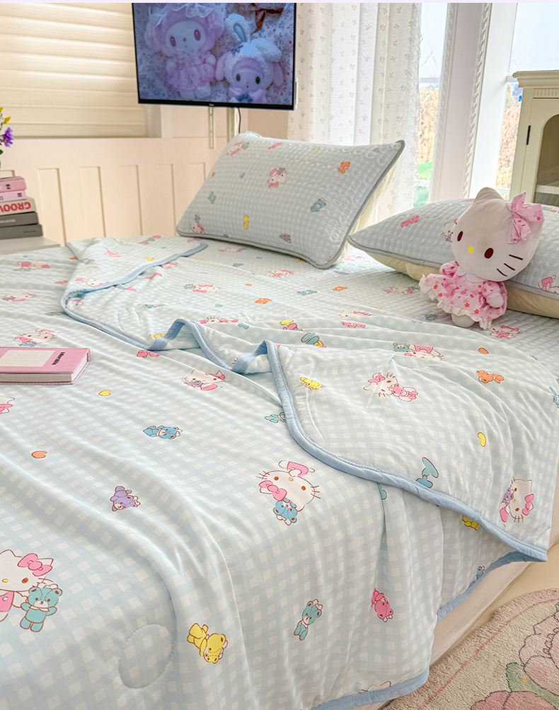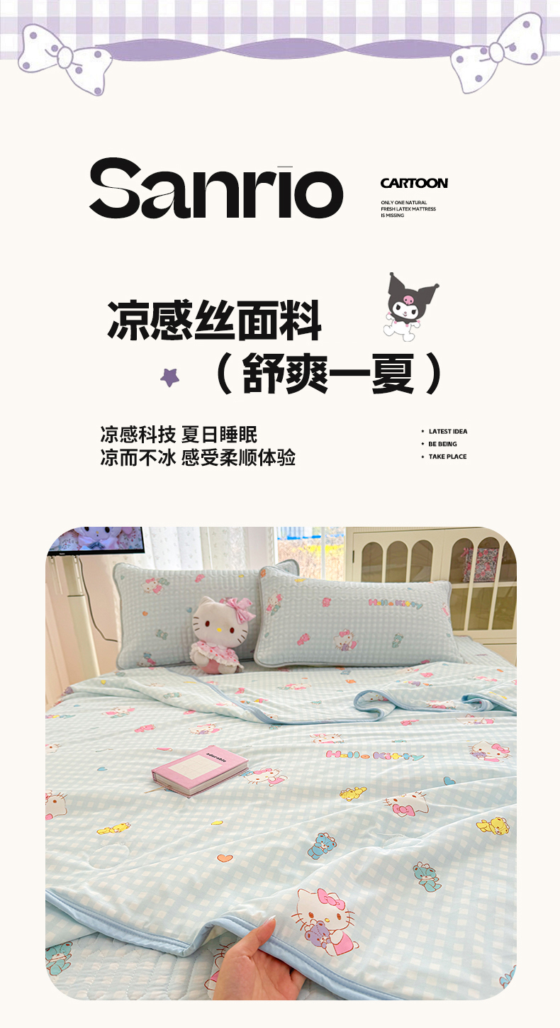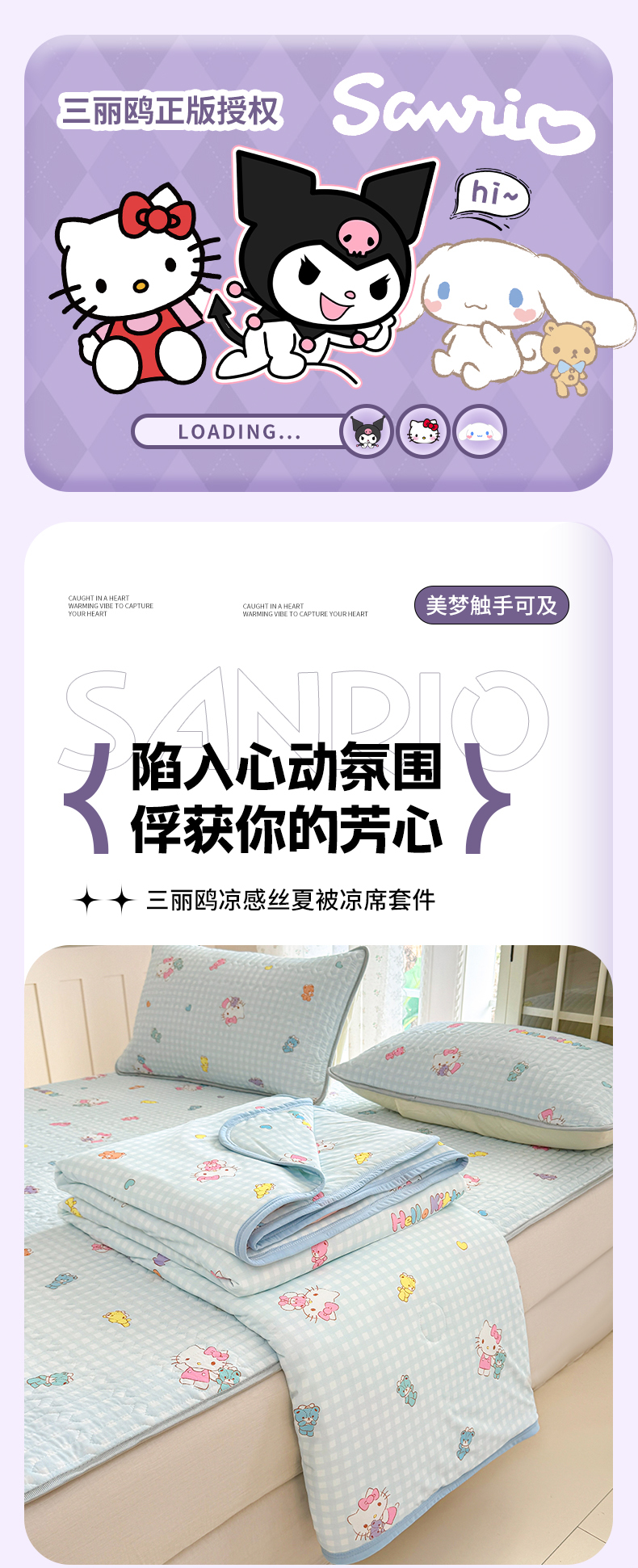 • 91家纺网 家纺一手货源 找家纺 博雅 2026新款三丽鸥A类仿锦氨组合小冰皮夏被夏凉被空调被凉席席子 小版-可爱KT