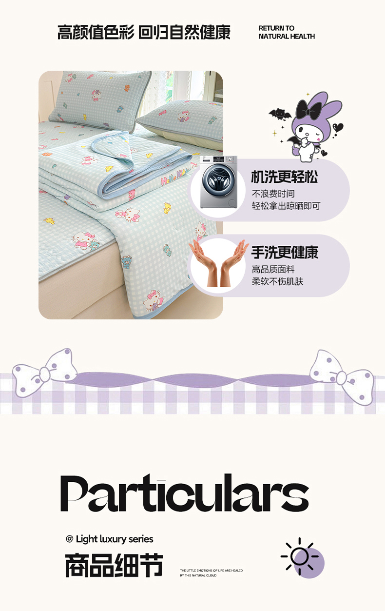 当前位置: 91家纺网 > 商品网购 > 床上用品 > 凉席 > 博雅 2026新款三丽鸥A类仿锦氨组合小冰皮夏被夏凉被空调被凉席席子 小版-可爱KT