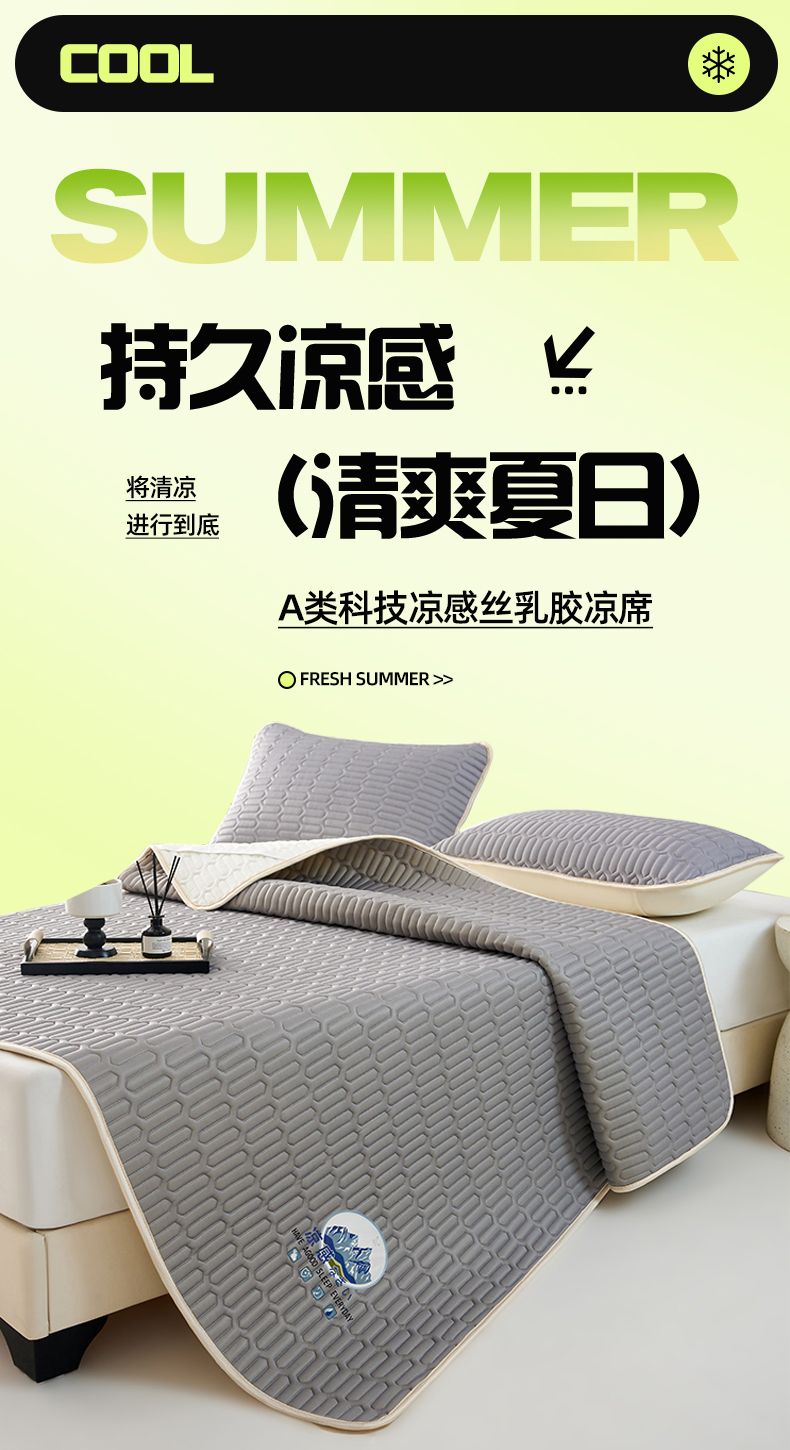 (总)奇丝雅 2026夏季A类纯色乳胶凉席冰丝席家用双人冰丝凉席可机洗夏天空调席三件套-场景二,组合图仅供展示不可下单,富士山-典雅蓝,富士山-果绿,富士山-墨绿,富士山-银灰,富士山-玉色