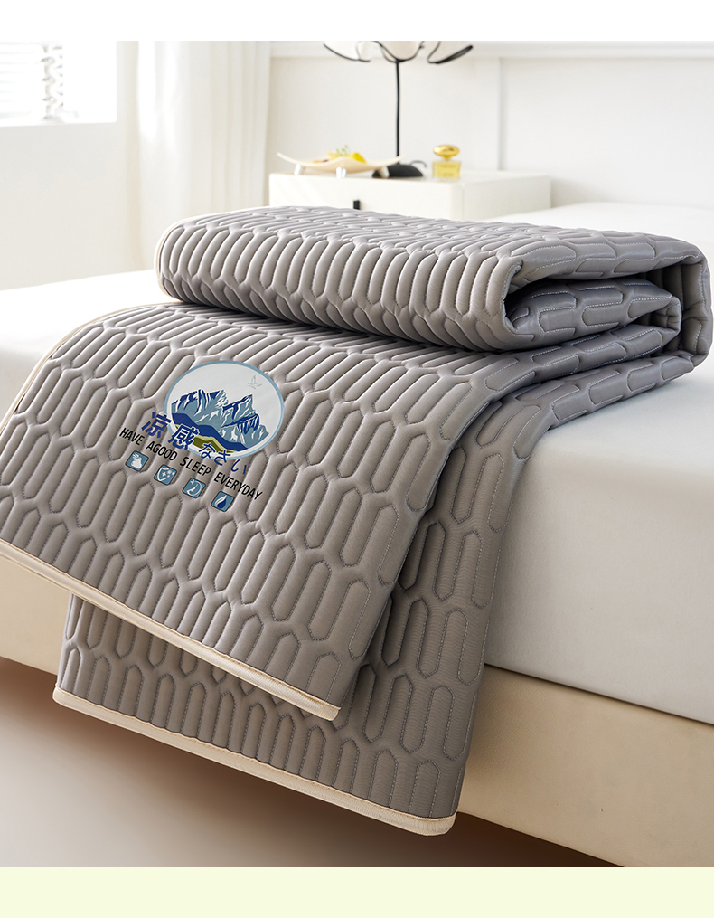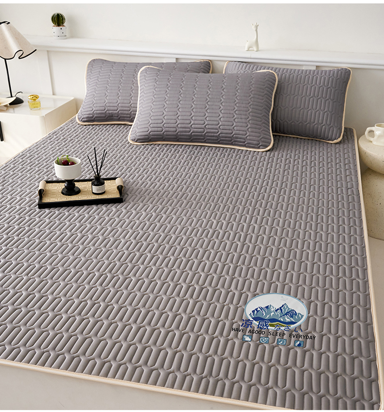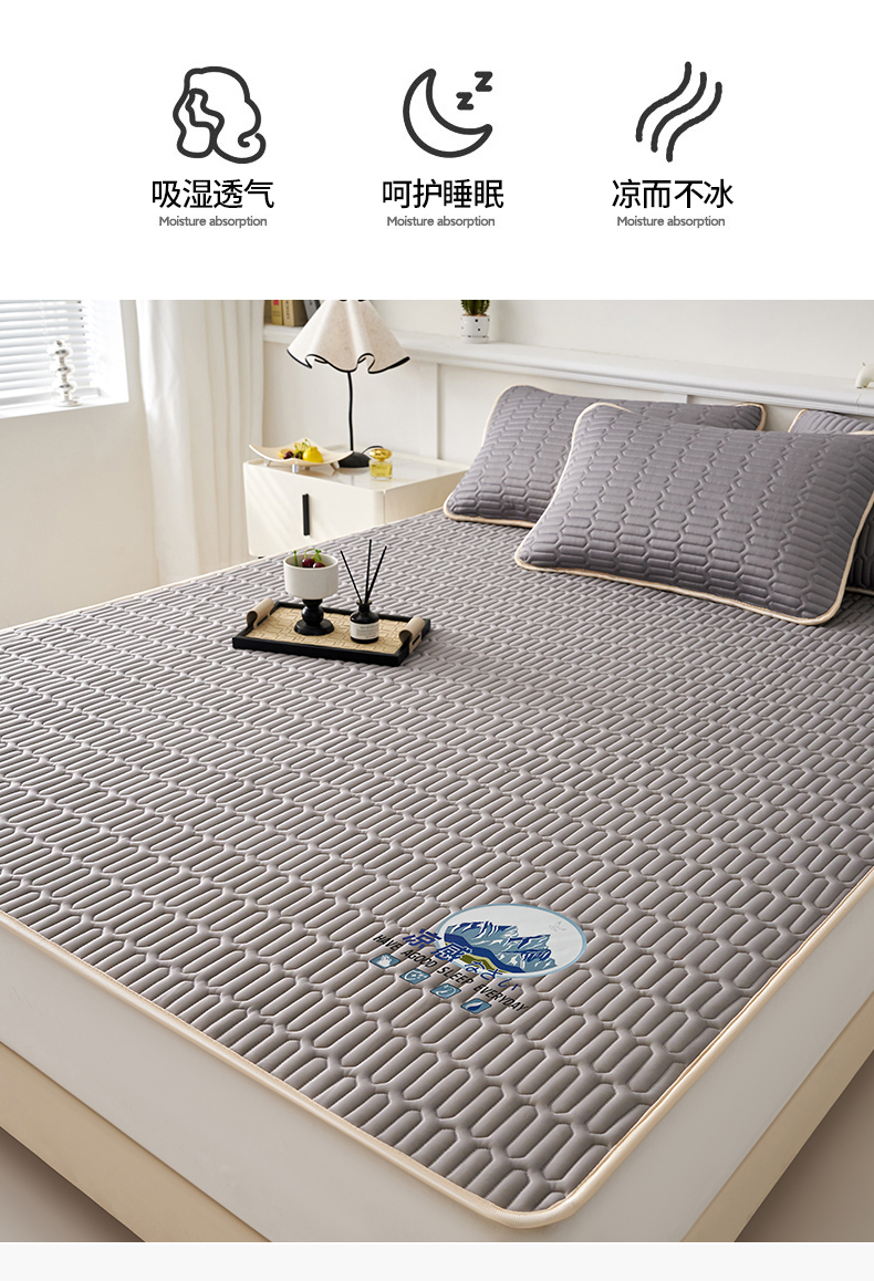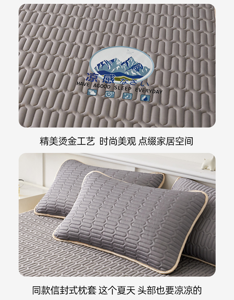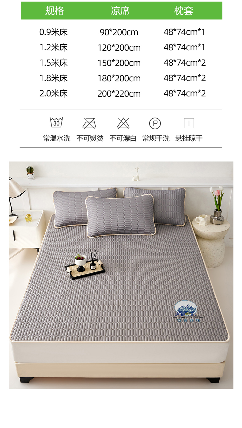 奇丝雅 2026夏季A类纯色乳胶凉席冰丝席家用双人冰丝凉席可机洗夏天空调席三件套-场景二 富士山-银灰