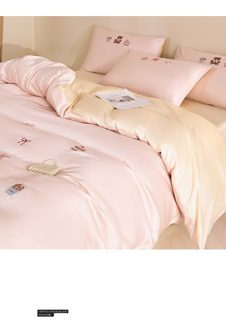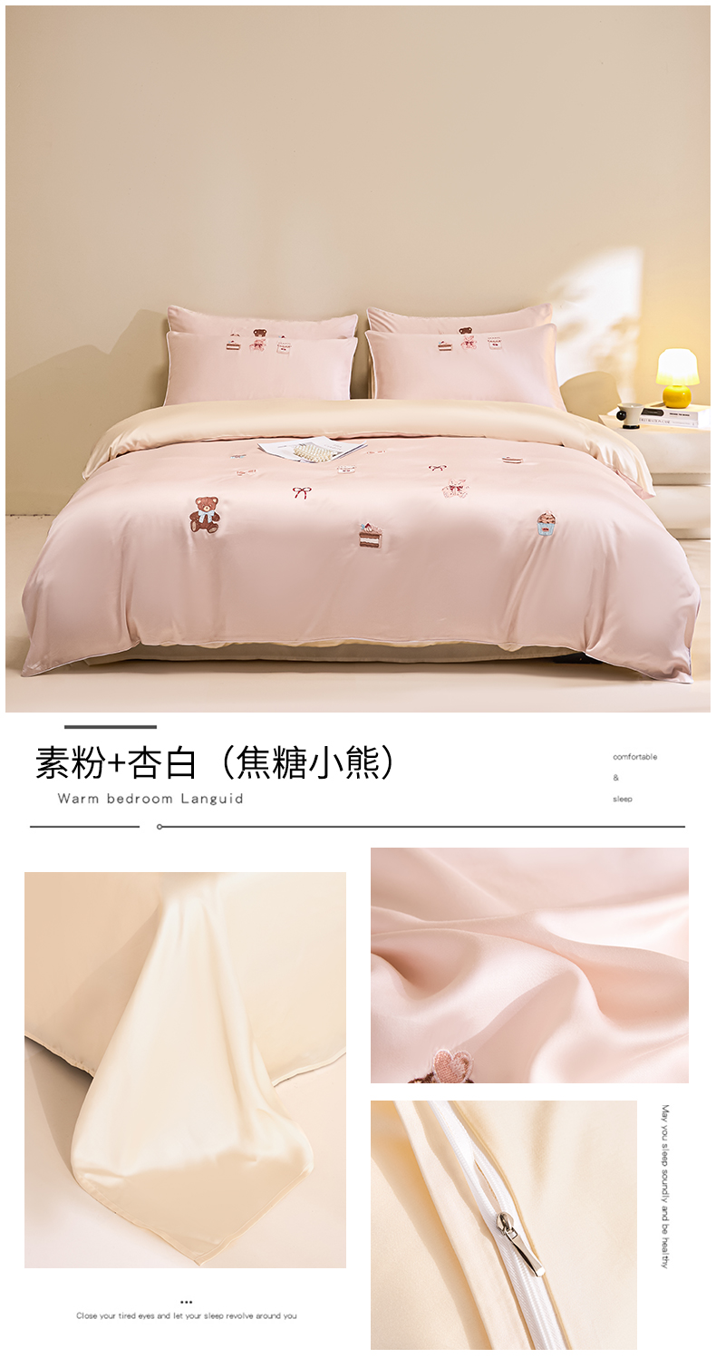 当前位置: 91家纺网 > 商品网购 > 床品套件 > 四件套 > 莱赛尔四件套 > DC 2026新款天丝刺绣麻绳平绣系列四件套 麻绳平绣-素粉+杏白(焦糖小熊)