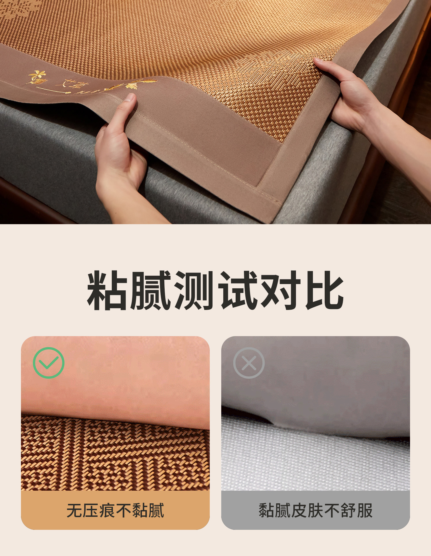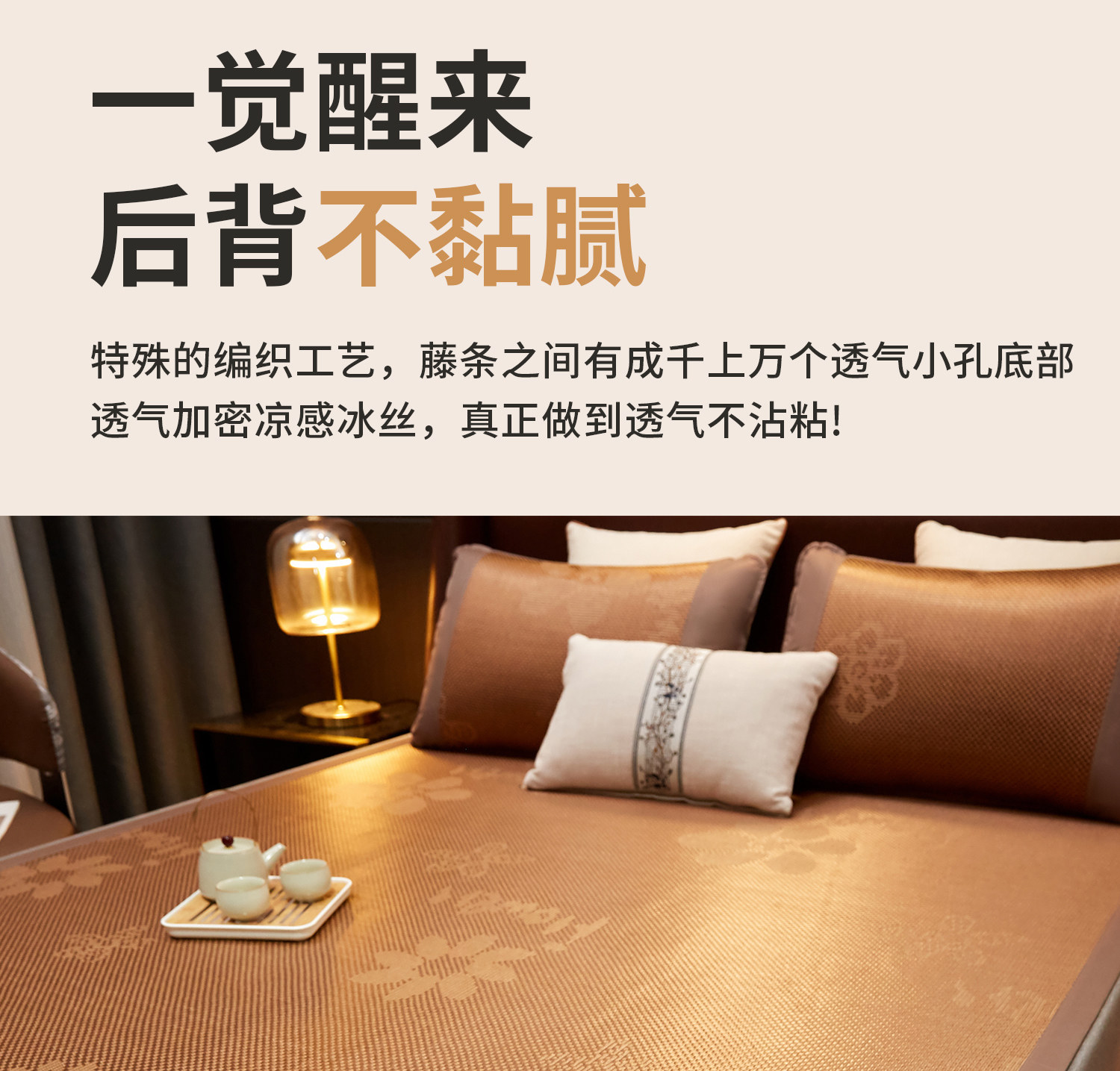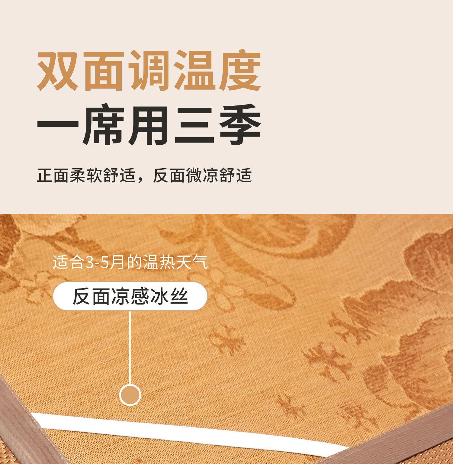 商品名称:小桃姐家纺 2026新款冰藤席冰丝凉席双面藤席凉席三件套空调席凉席席子 摩卡棕