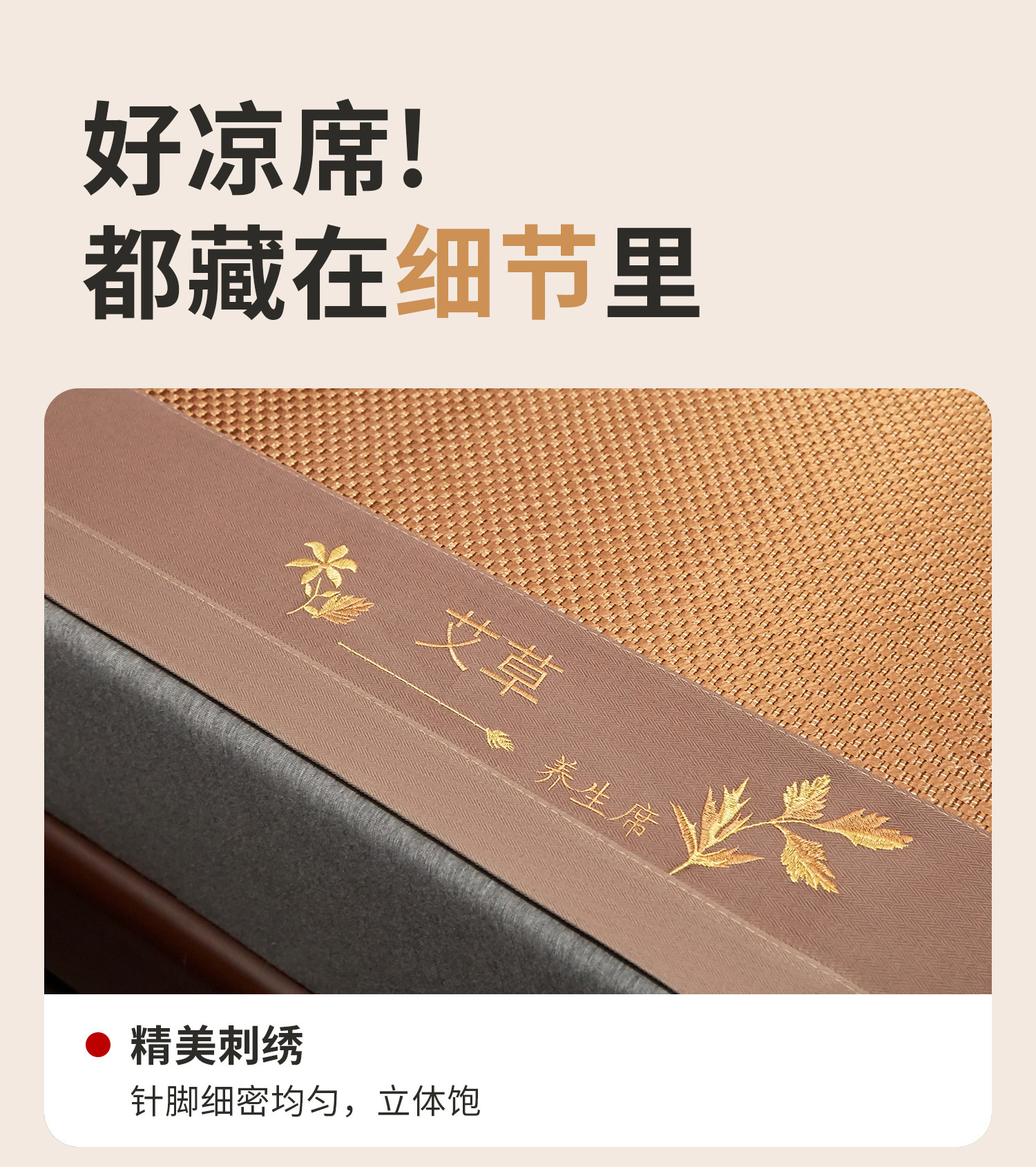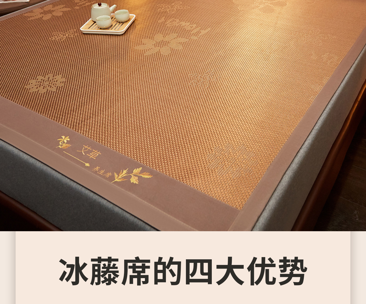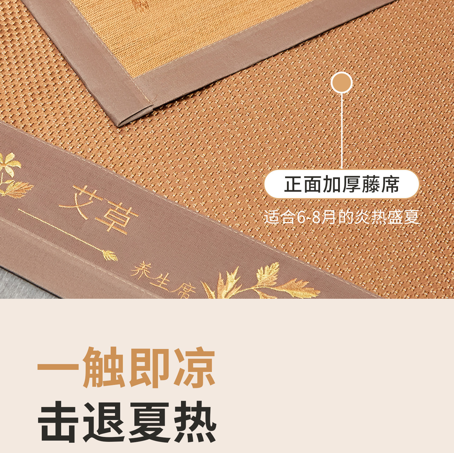 (总)小桃姐家纺 2026新款冰藤席冰丝凉席双面藤席凉席三件套空调席-水中花,艾草养生席水中花单面(仿冰藤),水中花单面-无刺绣(仿冰藤)