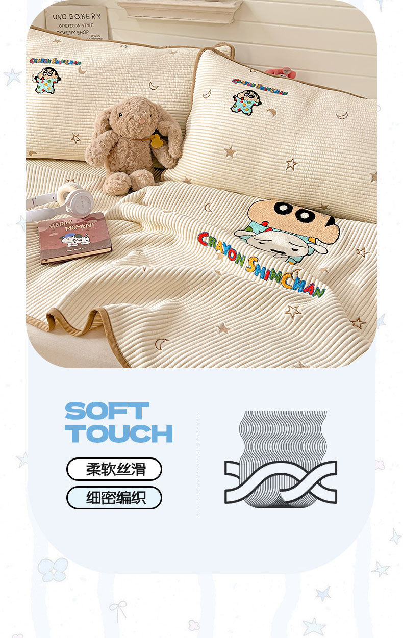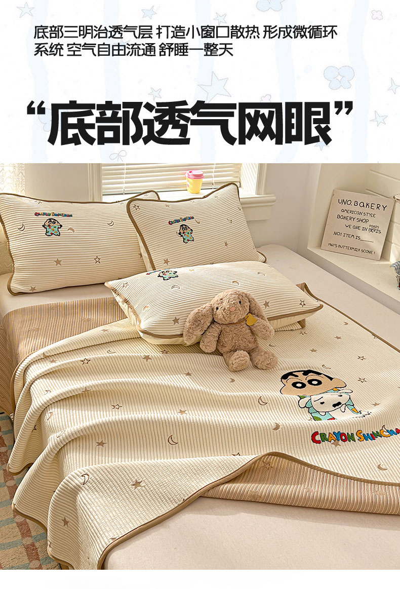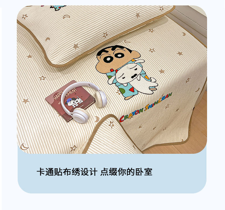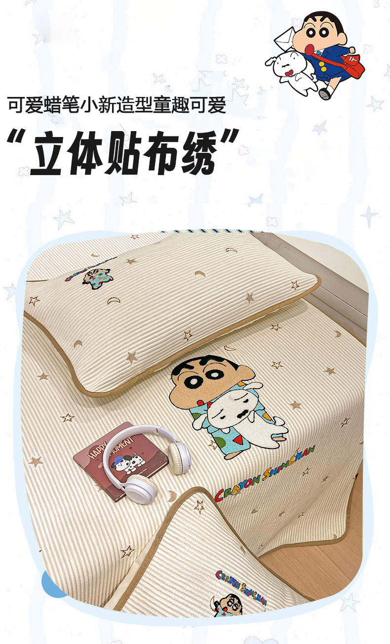 当前位置: 91家纺网 > 商品网购 > 床上用品 > 凉席 > 凉席套件 > 桃子家居 2026新款A类PE凉感卡通蜡笔小新毛巾绣高端工艺空调软席凉席三件套系列 PE蜡笔小新-伙伴小新