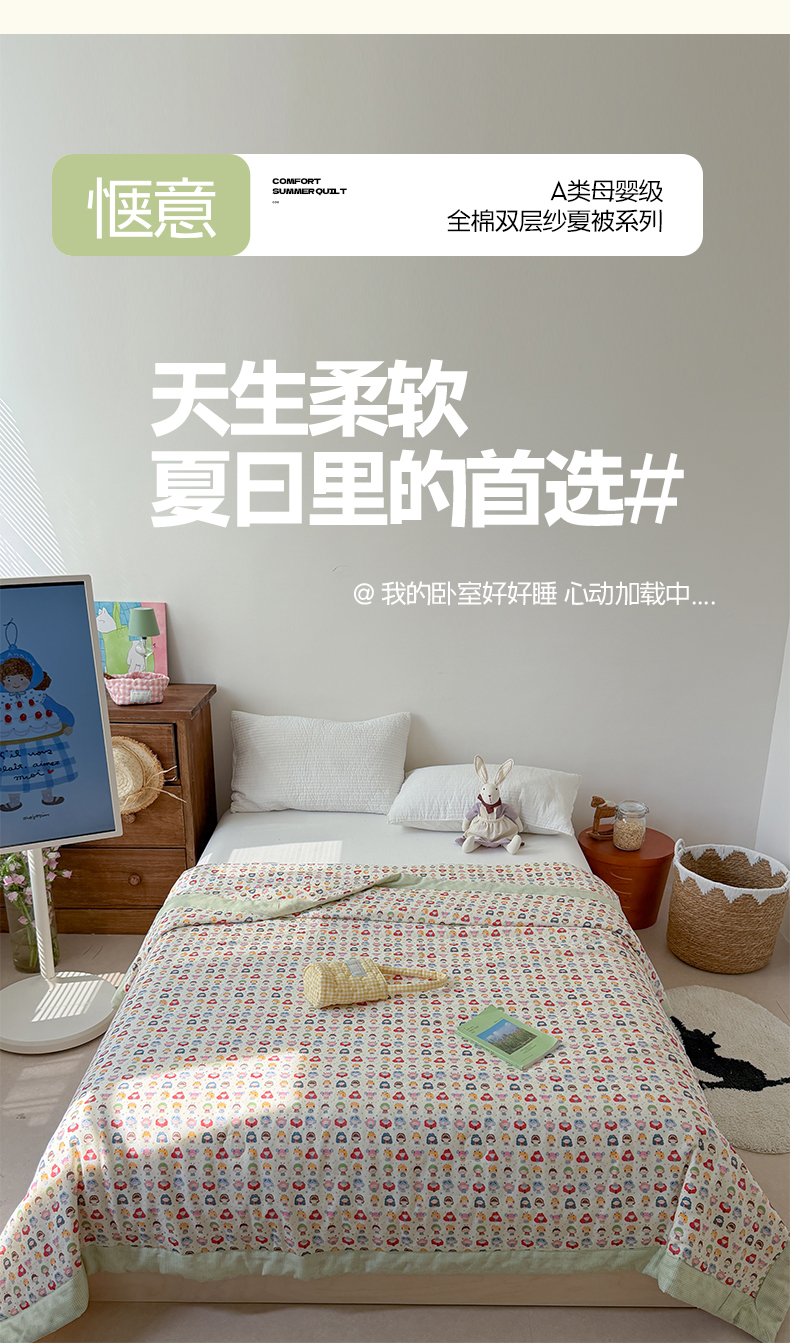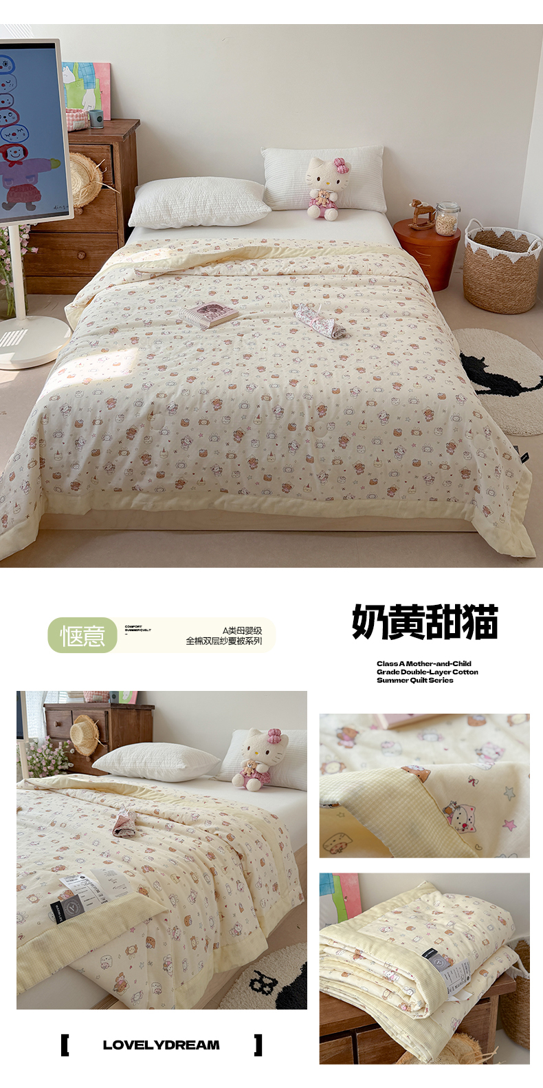(总)暖生活 2026新款A类母婴级全棉双层纱夏被,波点凯蒂,彩豆乐园,粉黛蝴蝶结,奶黄甜猫,青柠萌宠,星星乐园,云朵城堡,组合