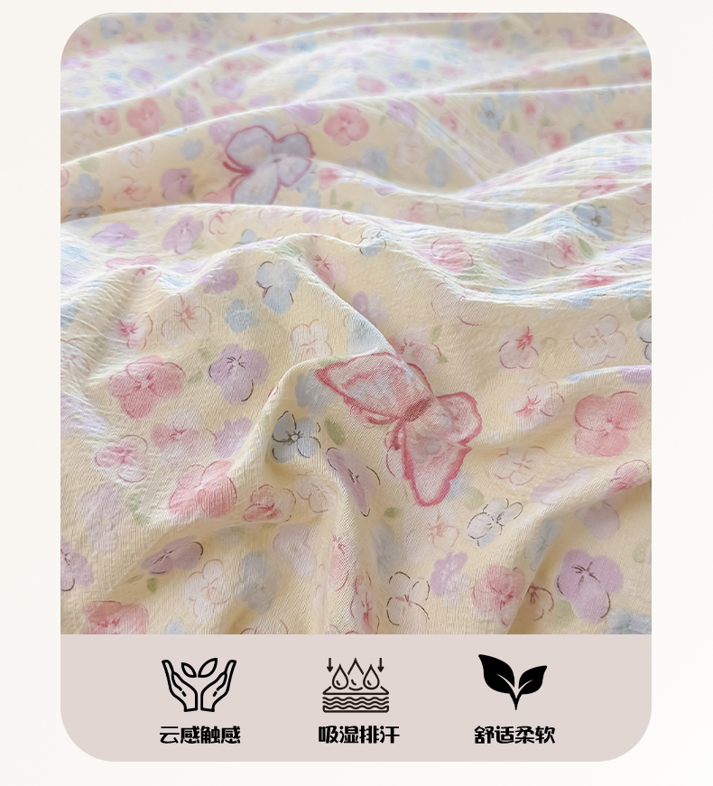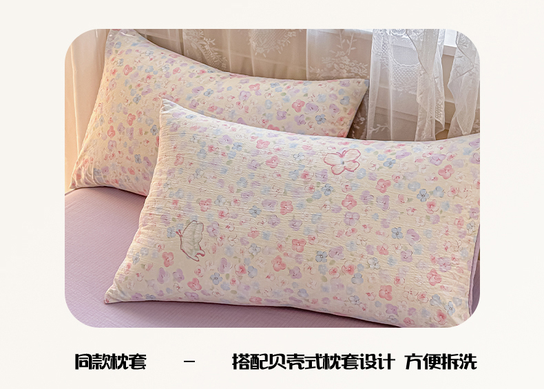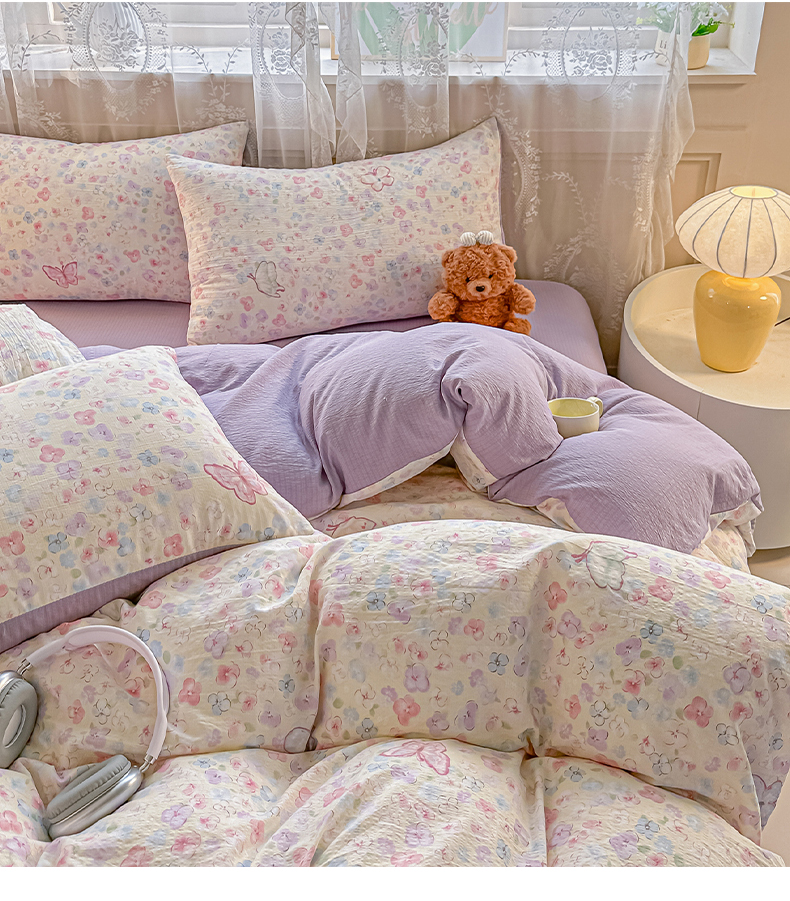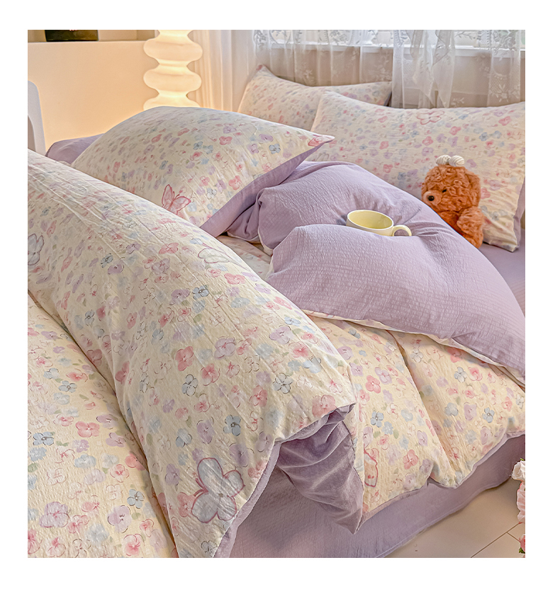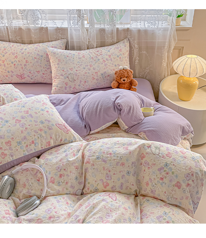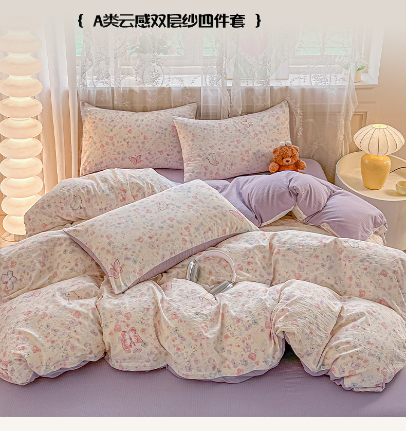 当前位置: 91家纺网 > 商品网购 > 床品套件 > 四件套 > 其它四件套 > 侯先生家纺新款直播爆款云感双层纱皱皱纱四件套小清新水洗棉床笠 繁花蝶影