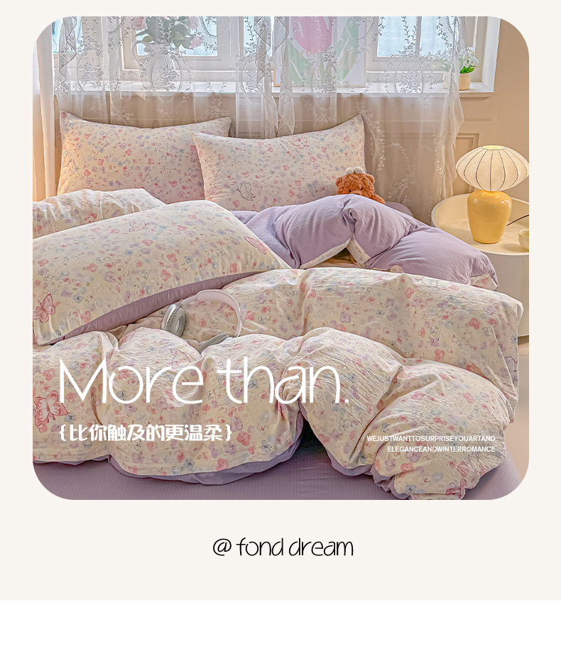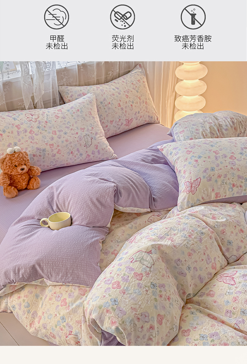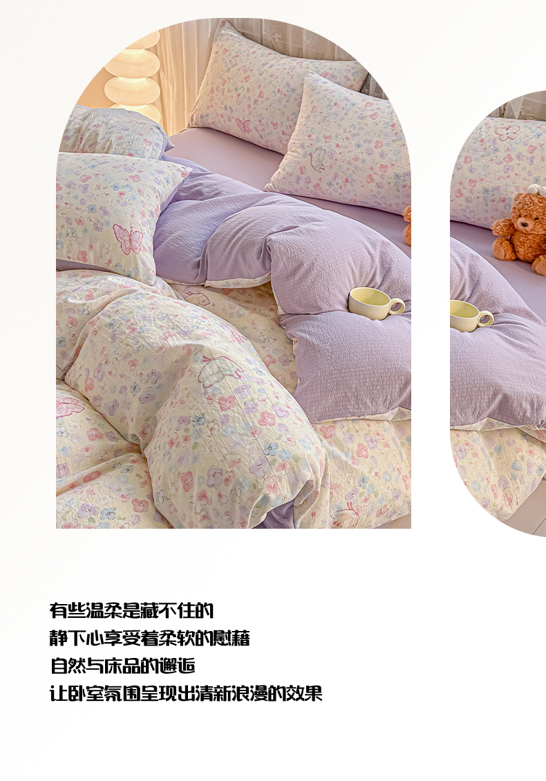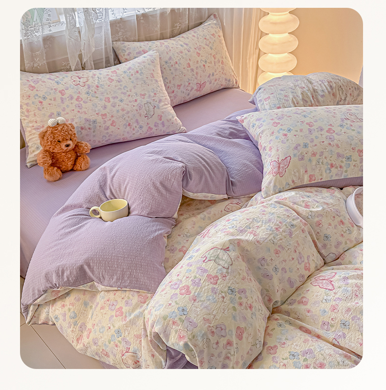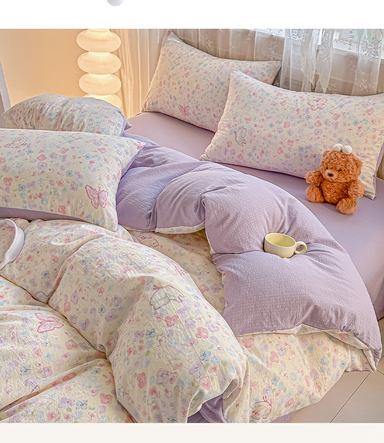 当前位置: 91家纺网 > 商品网购 > 床品套件 > 四件套 > 其它四件套 > 侯先生家纺新款直播爆款云感双层纱皱皱纱四件套小清新水洗棉床笠 繁花蝶影
