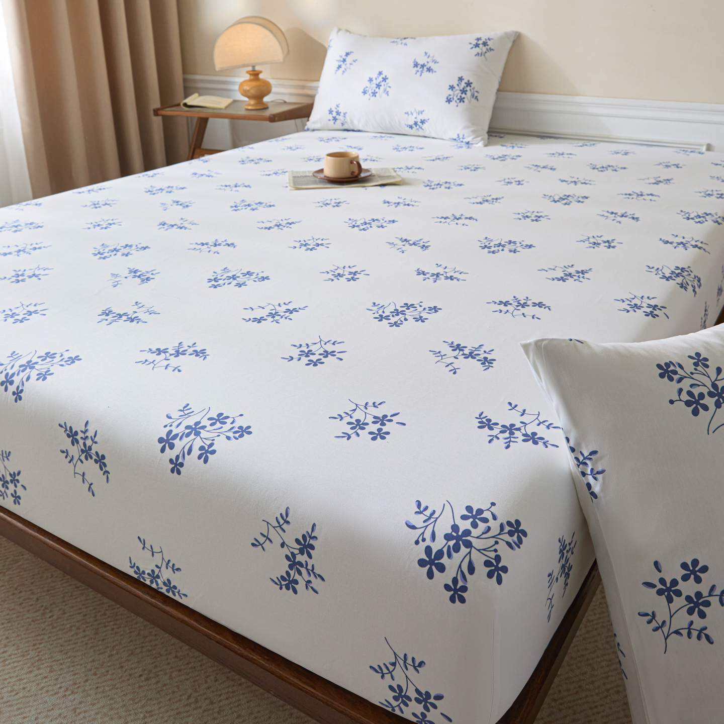 (总)梵克保罗 2026新款全棉专版花型青花瓷系列单品床笠,墨染,釉知春,韵意盈蓝