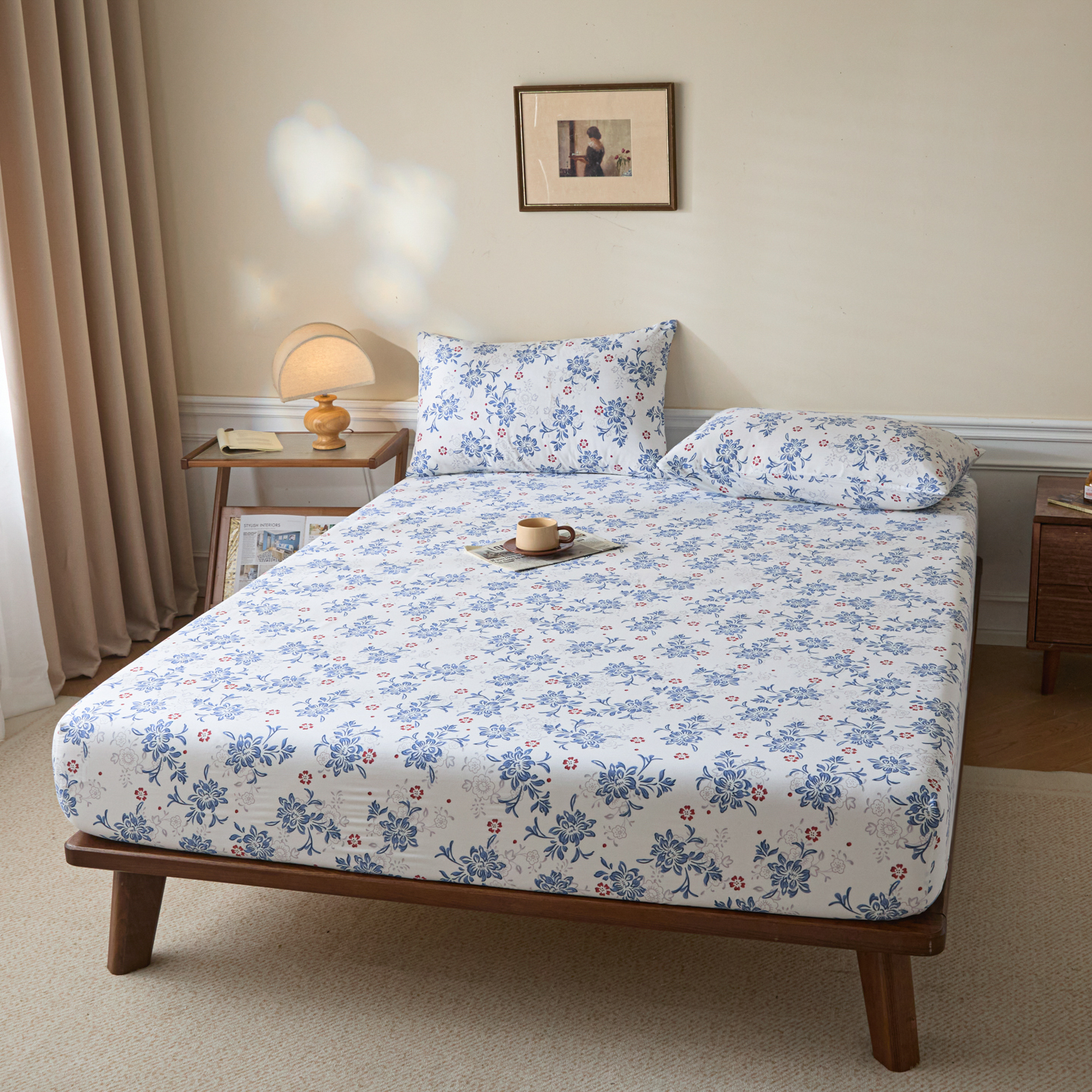 商品名称:梵克保罗 2026新款全棉专版花型青花瓷系列单品床笠 釉知春