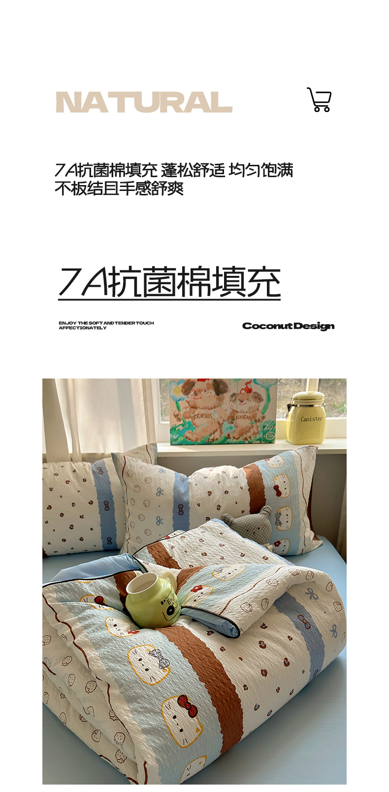 商品名称:几禾 2026新款泡芙纱单夏被夏凉被空调被-凉糖系列(凉而不冰的触感,清凉与柔软兼得) 凉糖-可可小猫条