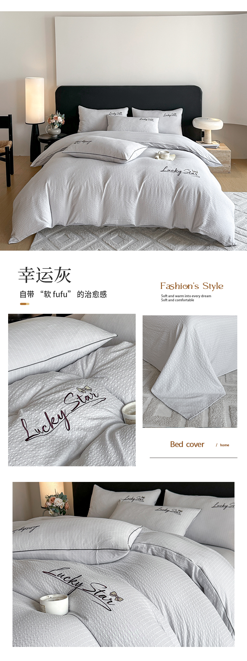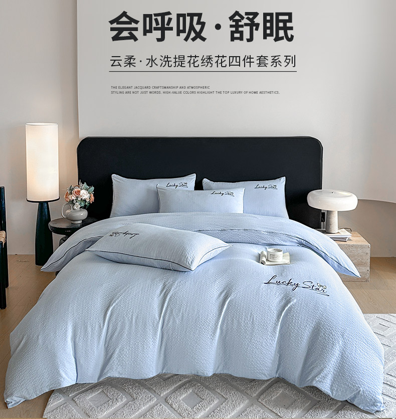 (总)利欧 2026新款水洗棉四件套提花四件套刺绣四件套-幸运,幸运蓝,幸运白,幸运黑,幸运灰,幸运米黄,幸运深蓝,幸运驼,幸运玉,幸运紫
