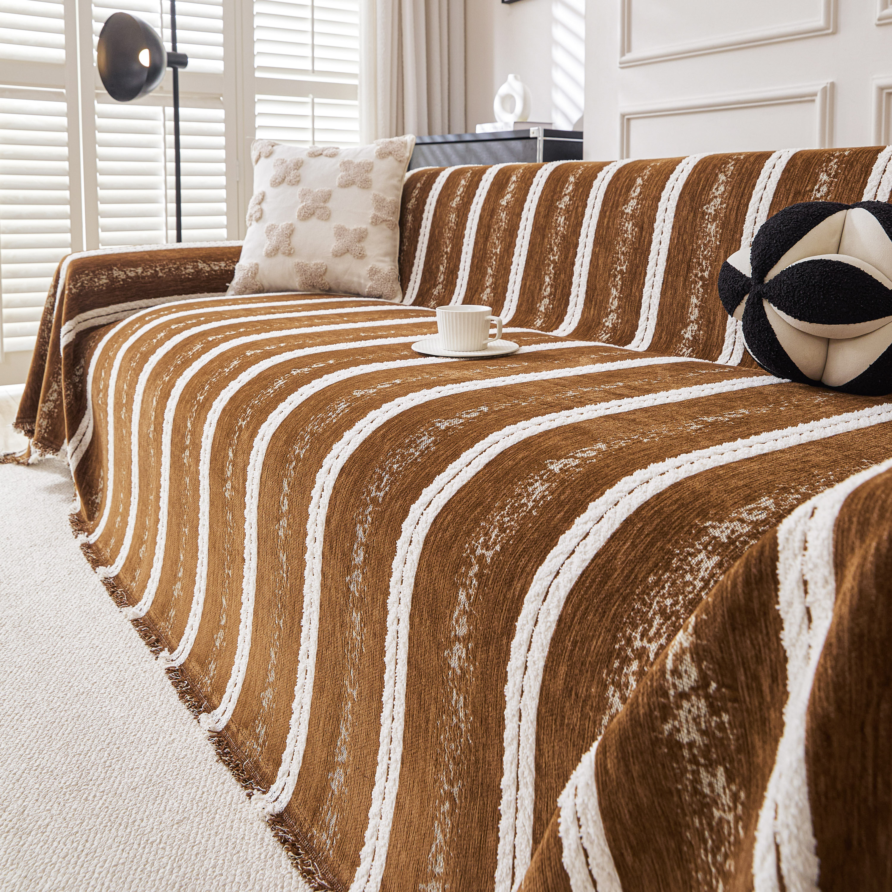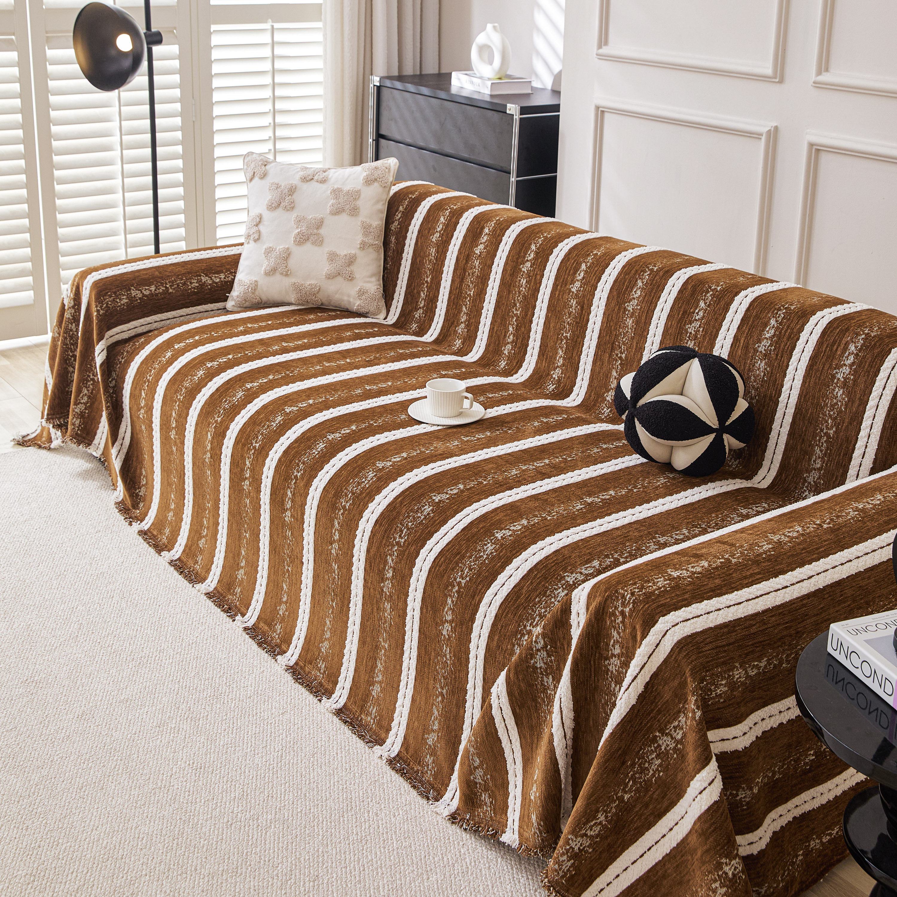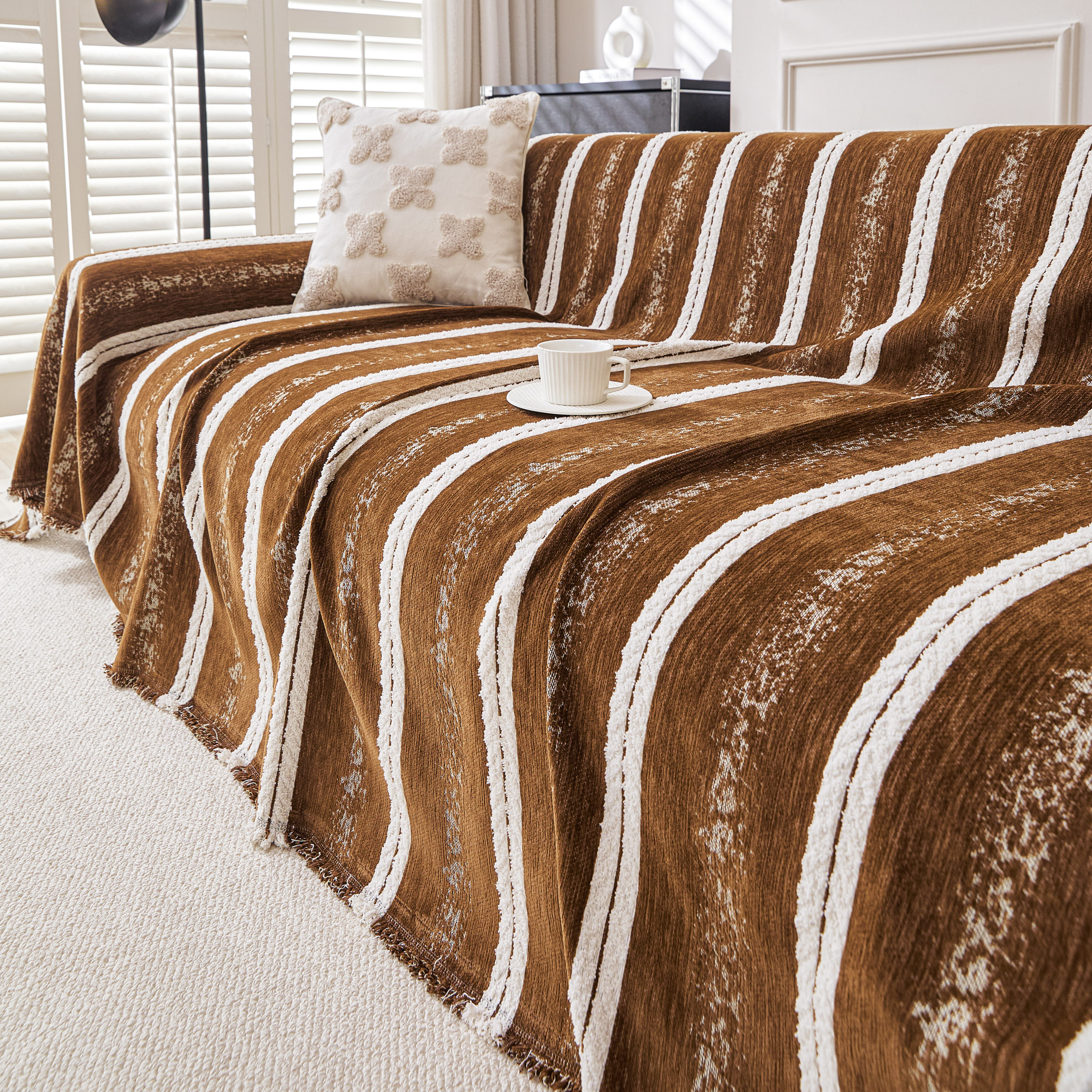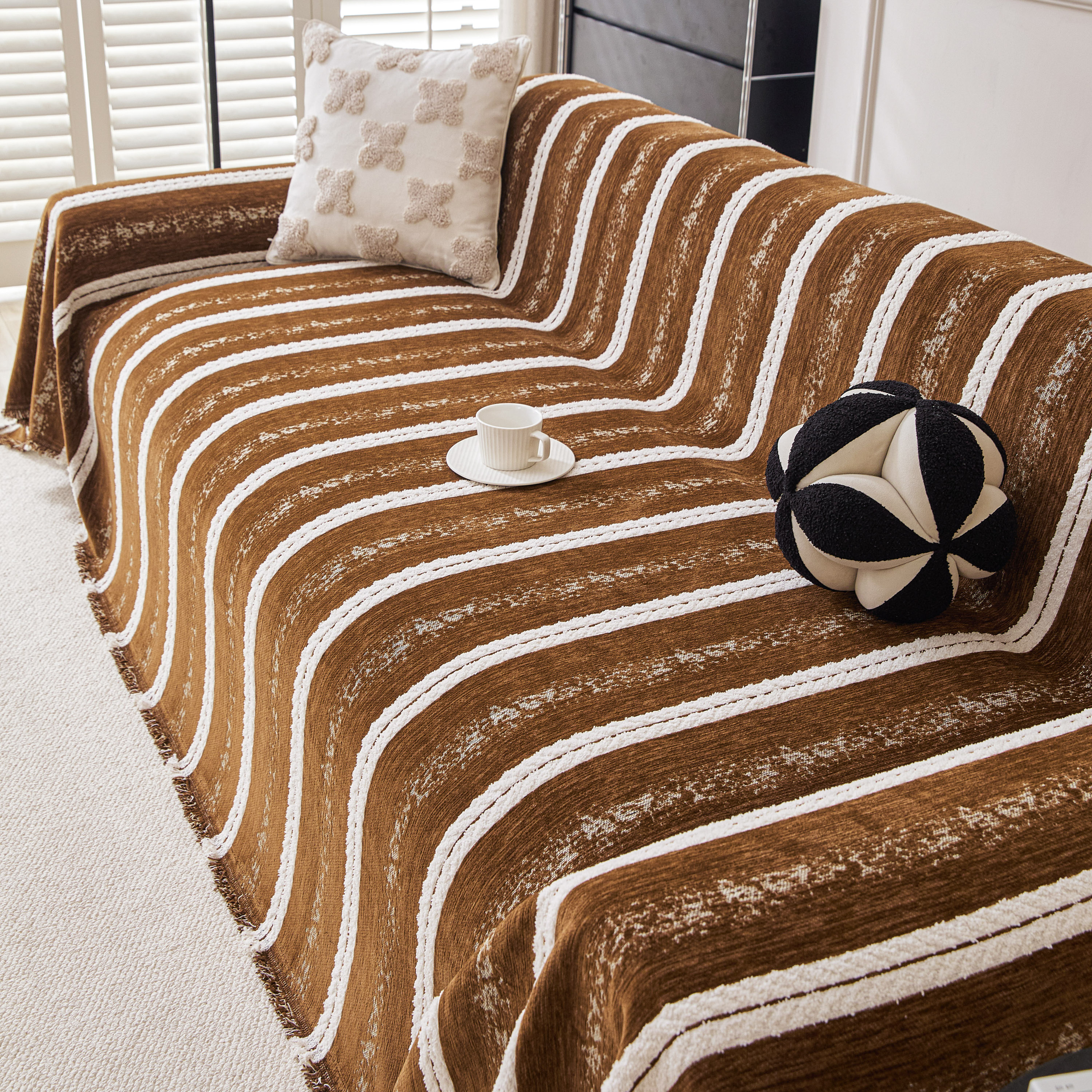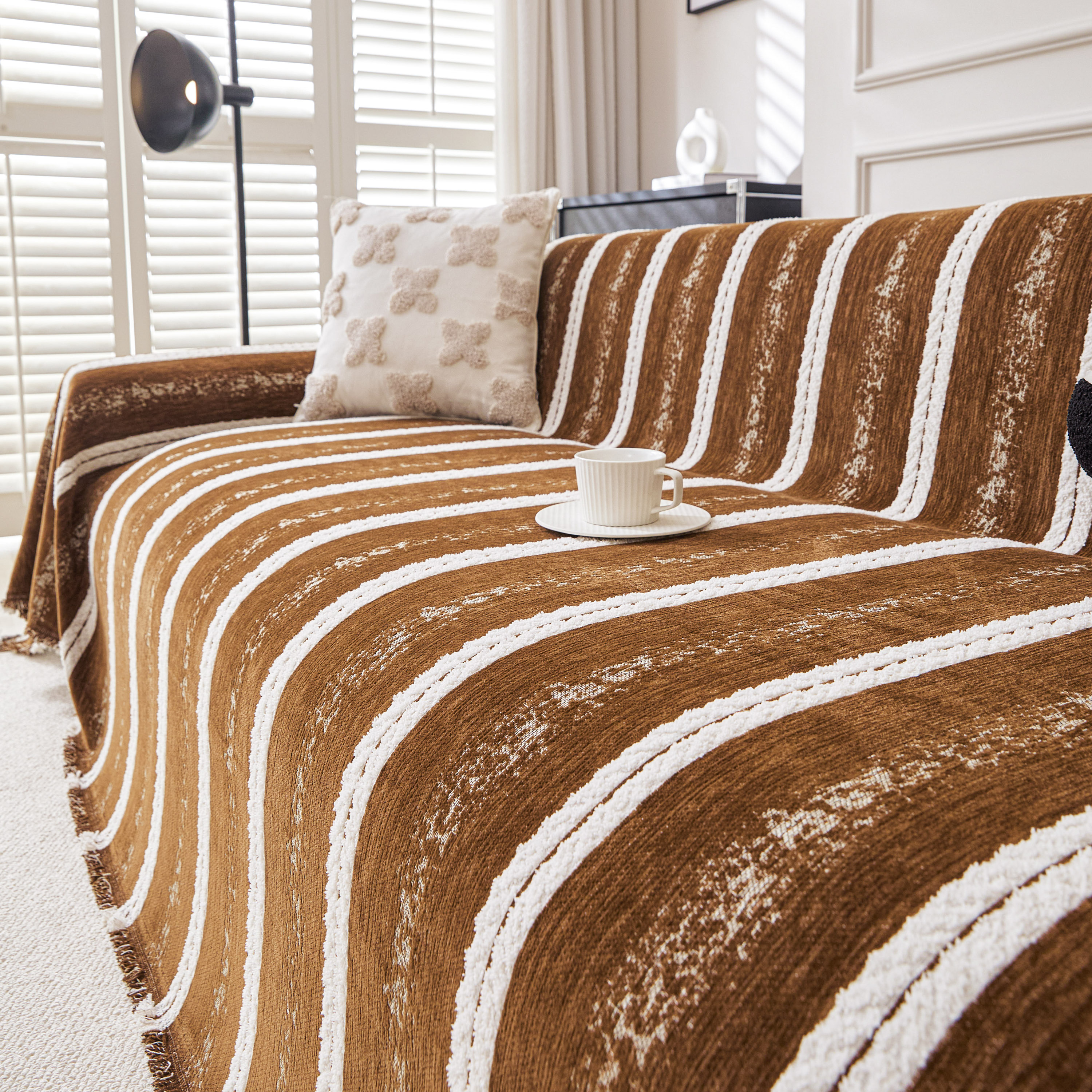 当前位置: 91家纺网 > 商品网购 > 居家布艺 > 坐垫/椅垫/沙发垫 > 沙发垫 > 逐日沙发套 2026新款加厚雪尼尔-沙发巾 织序流年-咖