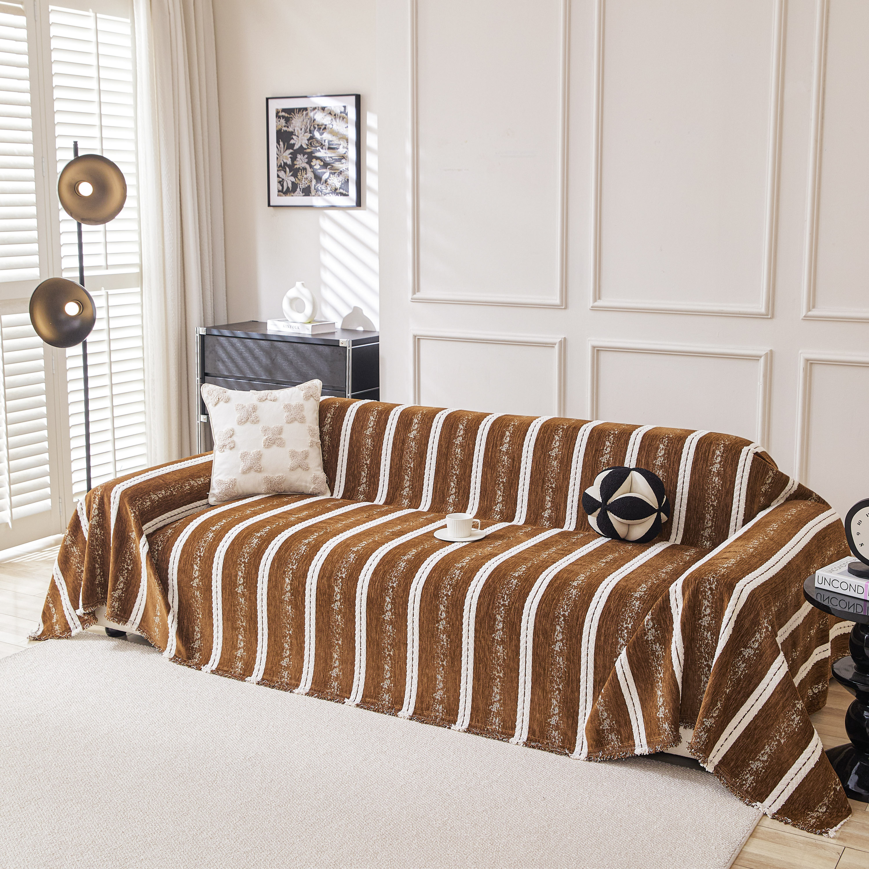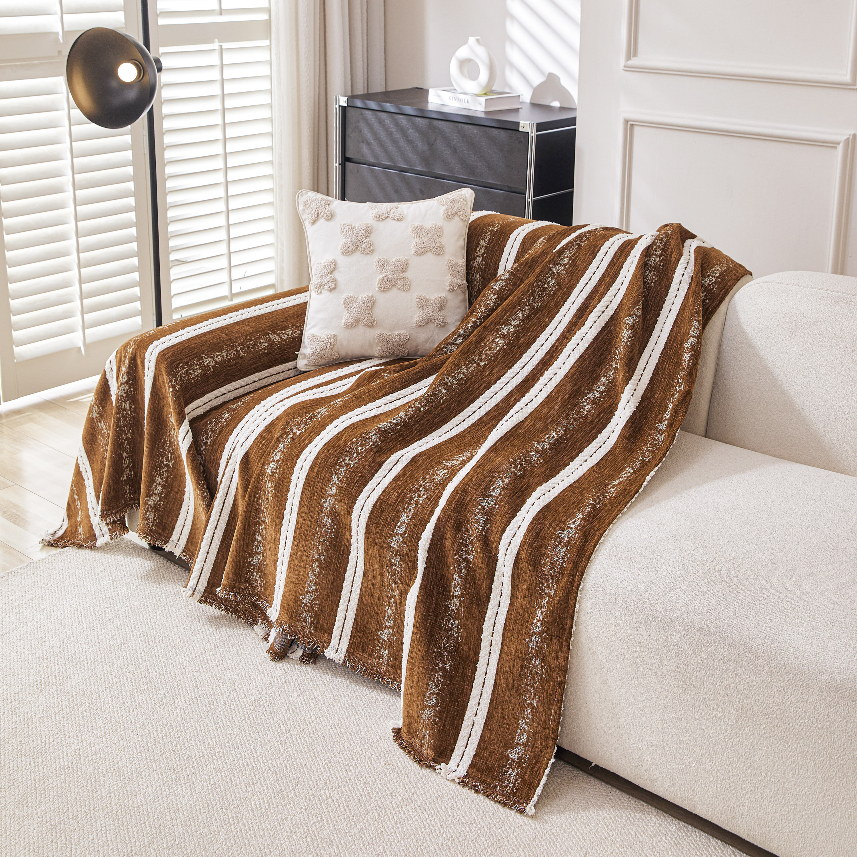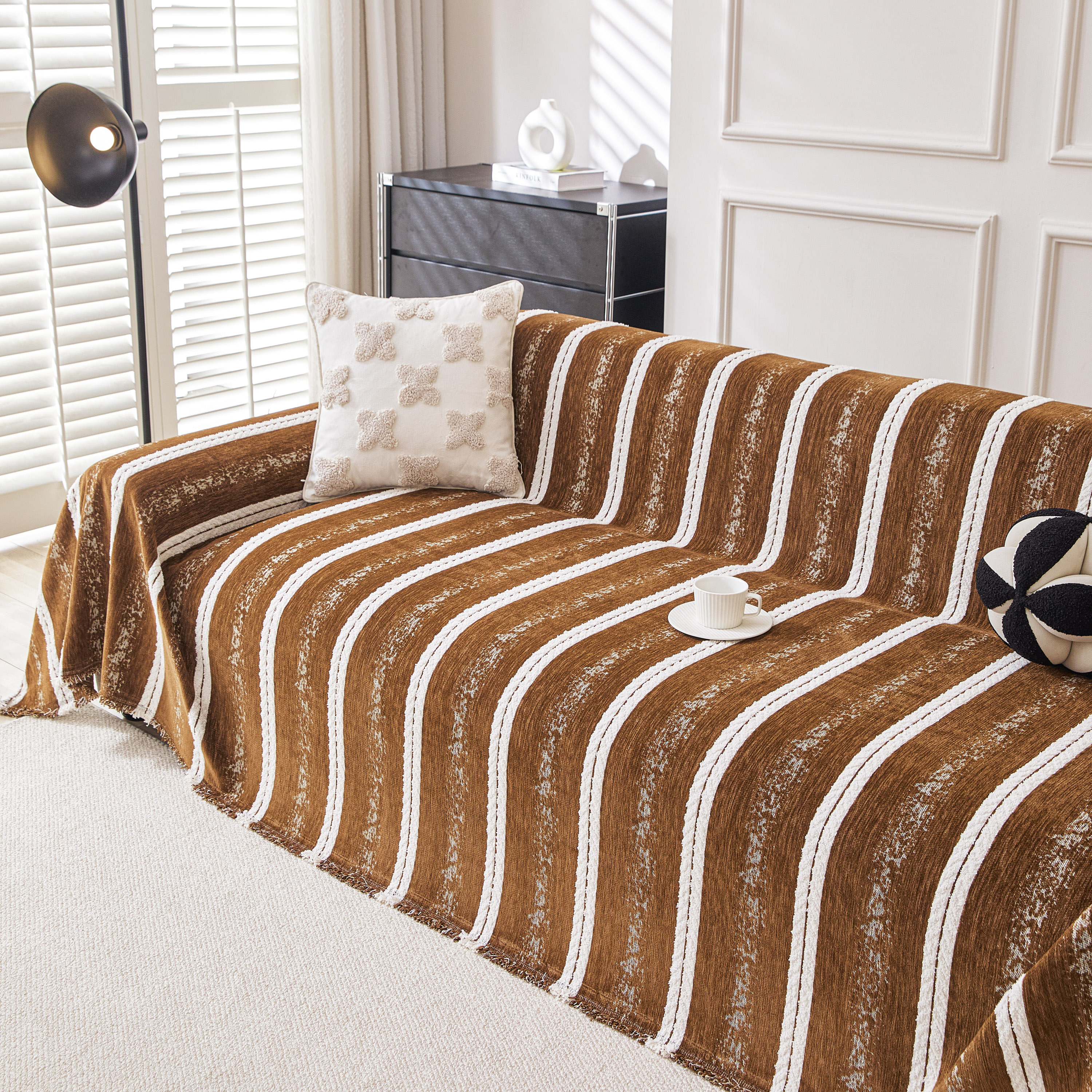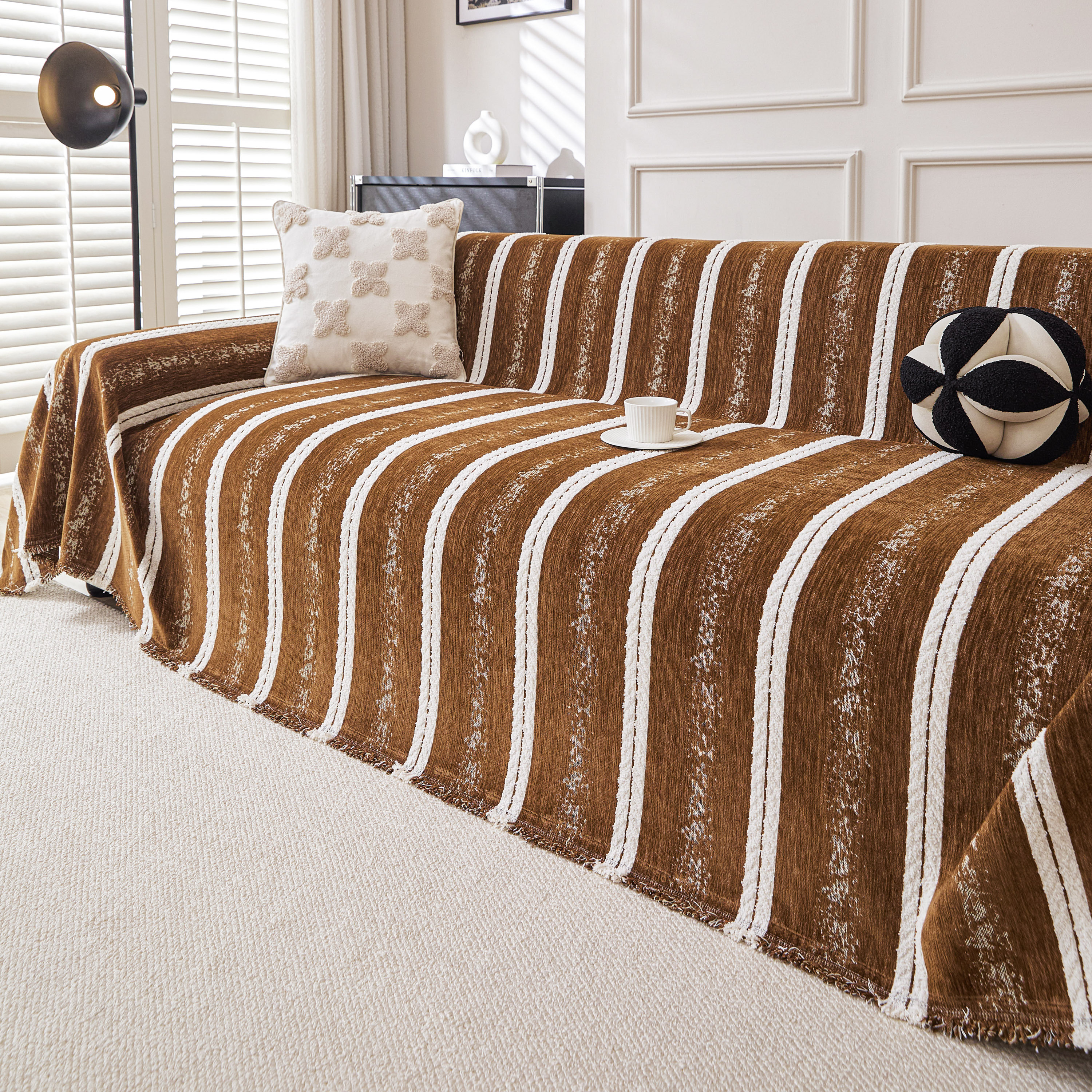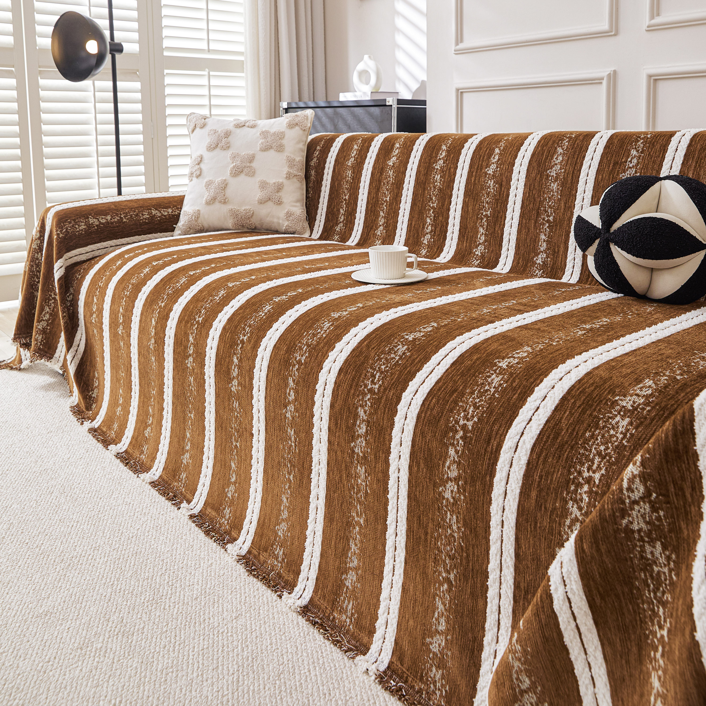 当前位置: 91家纺网 > 商品网购 > 居家布艺 > 坐垫/椅垫/沙发垫 > 沙发垫 > 逐日沙发套 2026新款加厚雪尼尔-沙发巾 织序流年-咖
