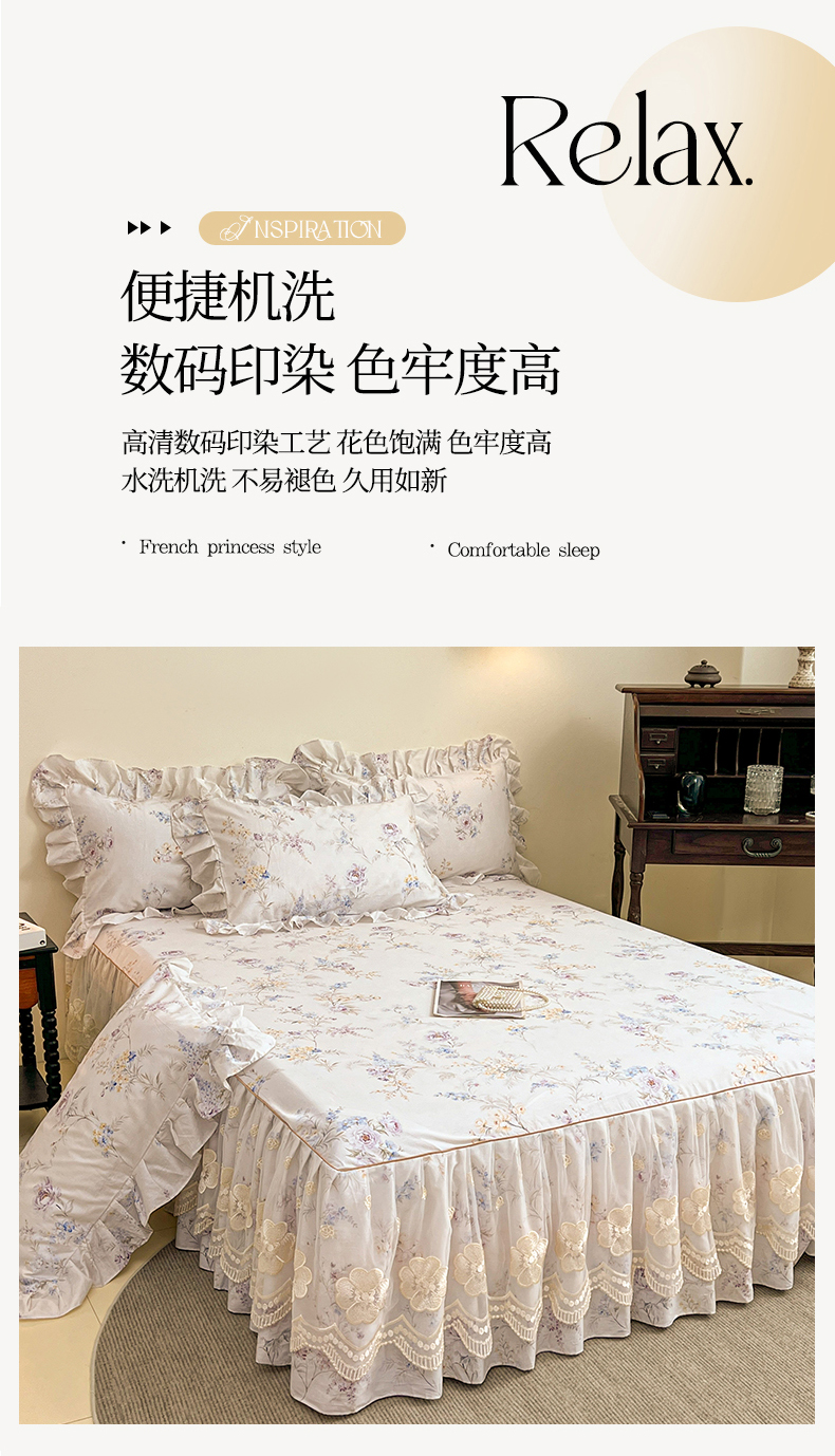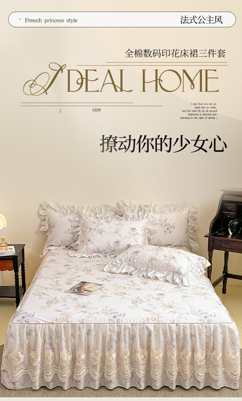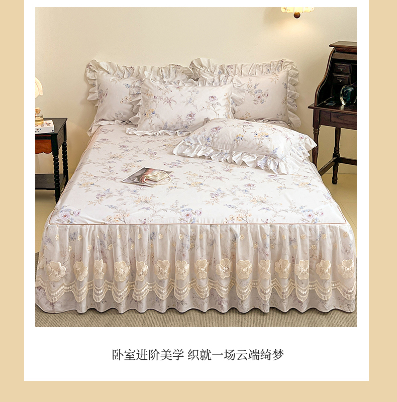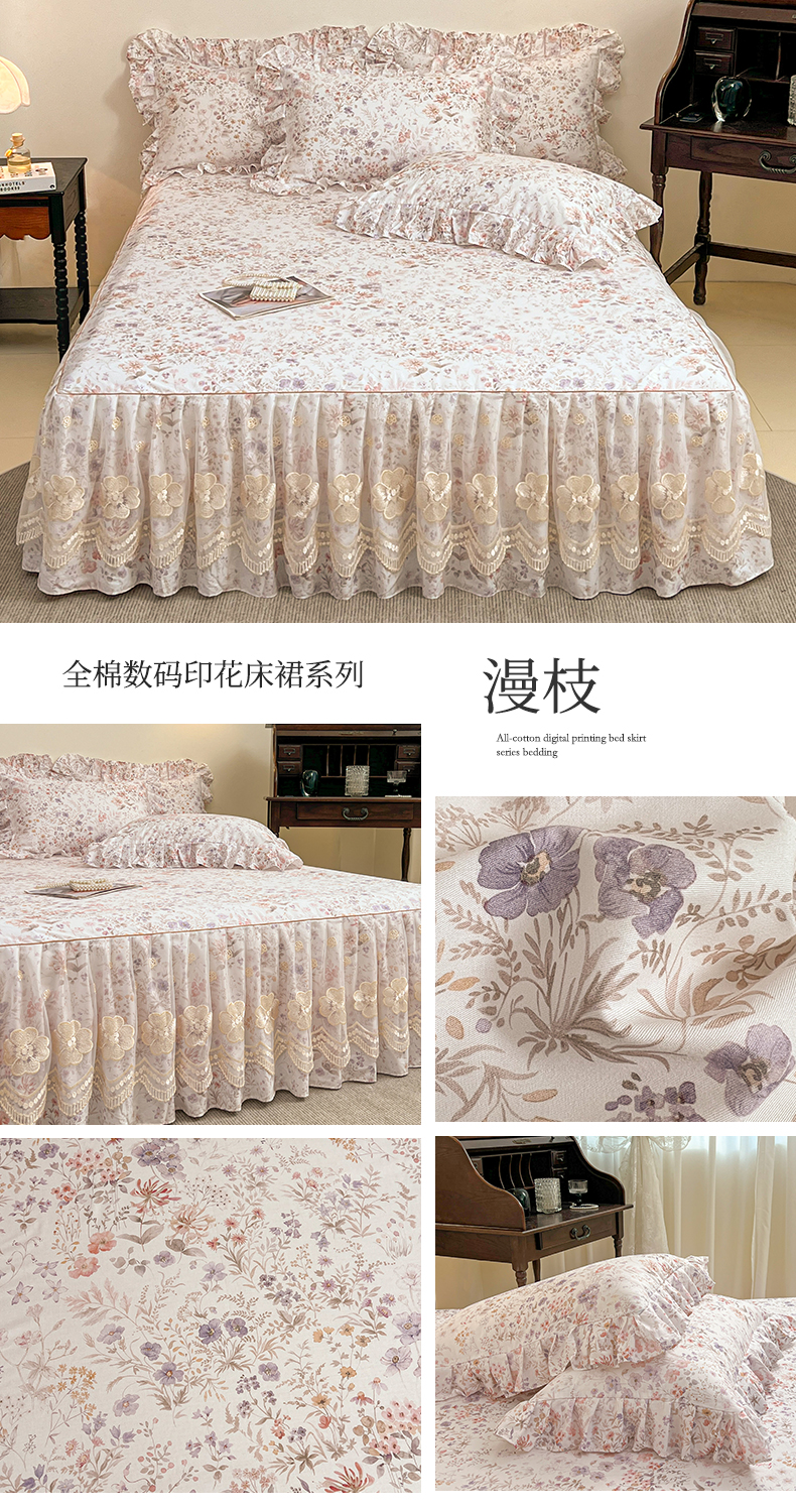 当前位置: 91家纺网 > 商品网购 > 床品套件 > 三件套 > 宜凡家纺 2026新款全棉数码印花单层床裙三件套③号系列 梵汐