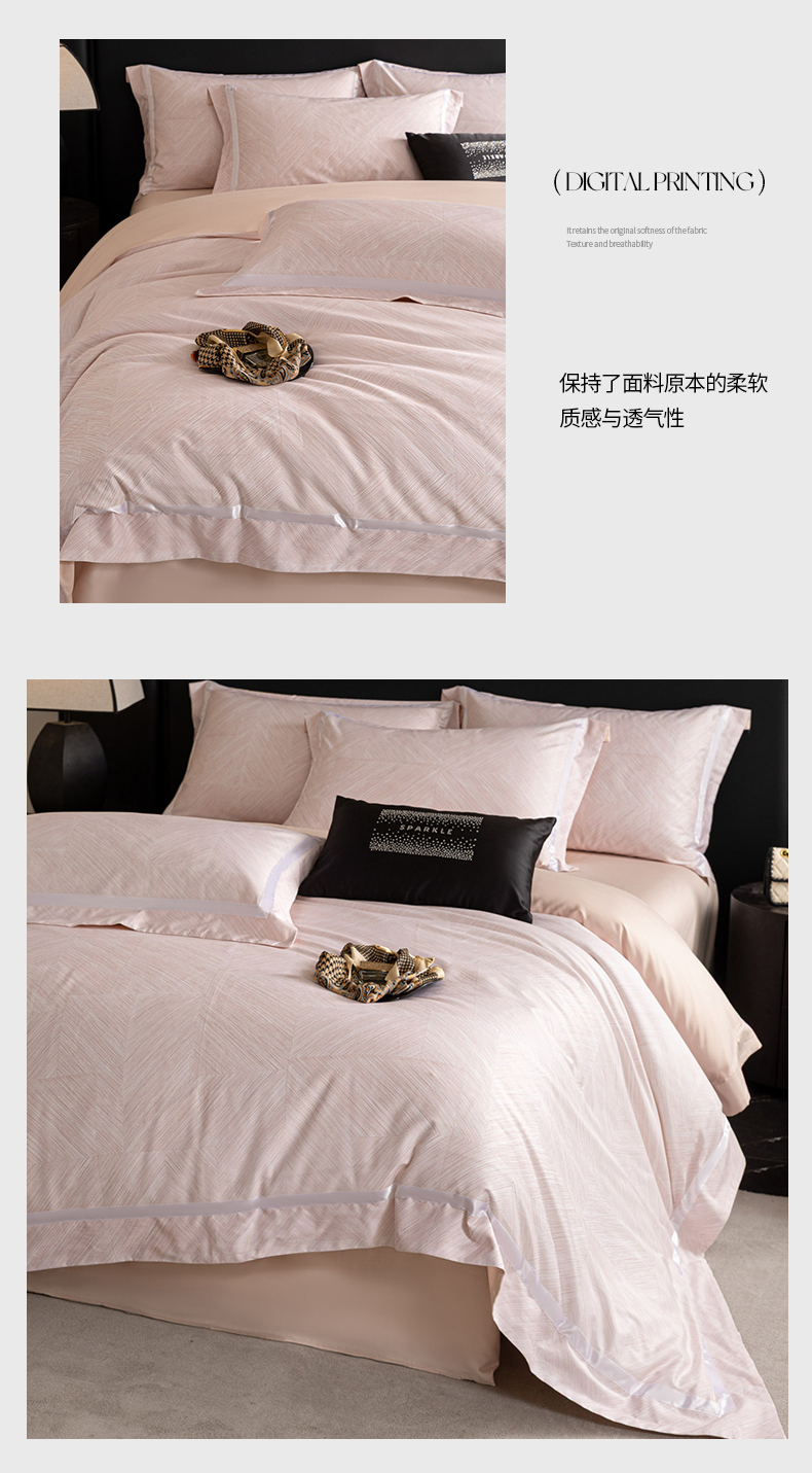 (总)新方向 【控价 提供买家秀】2026新款数码印花50s双股全棉贡缎长绒棉四件套-迷境(控价 标准328元 加大348元),迷境-蔷薇粉,迷境-爵士灰