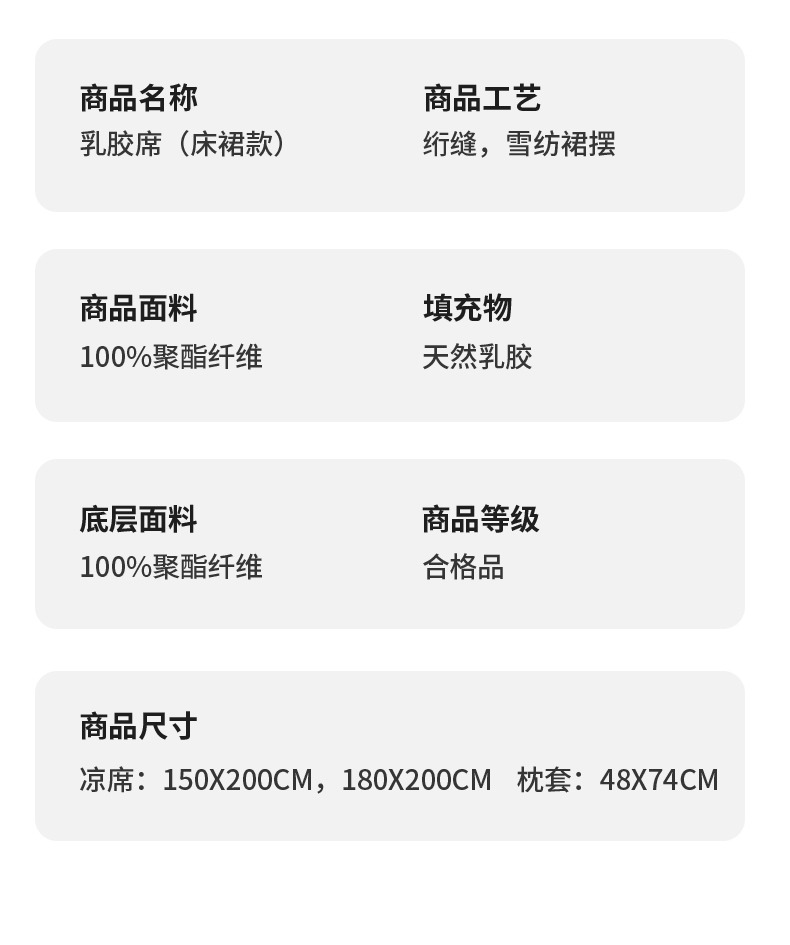 [{"sp_id":11,"sp_name":"\u989c\u8272","sp_format":2,"sp_list":[{"sp_value_id":1662,"sp_value_name":"\u83f1\u5f62\u683c\u5e8a\u88d9\u6b3e-\u7c89\u8272","sp_value_image":{"id":999,"path":"https:\/\/img3.91jf.com\/ghelp\/2026\/20260413\/20260413154830_549794.jpg"},"sp_value_video":{"id":0,"img":"","path":"","time":0,"download_num":0,"play_num":0},"price":"38.00","storage":4000,"weight":"2.000","is_check_weight":0,"plus_price":"","sp_sort":0}]},{"sp_id":29,"sp_name":"\u5c3a\u5bf8","sp_format":1,"sp_list":[{"sp_value_id":353,"sp_value_name":"\u5e8a\u88d9\u6b3e120x200cm\u5355\u5e2d\uff080.5\u4e73\u80f6\uff09","sp_value_image":{"id":0,"path":""},"sp_value_video":{"id":0,"img":"","path":"","time":0,"download_num":0,"play_num":0},"price":"38.00","storage":500,"weight":"2.000","is_check_weight":0,"plus_price":"","sp_sort":5},{"sp_value_id":354,"sp_value_name":"\u5e8a\u88d9\u6b3e150x200cm\u5355\u5e2d\uff080.5\u4e73\u80f6\uff09","sp_value_image":{"id":0,"path":""},"sp_value_video":{"id":0,"img":"","path":"","time":0,"download_num":0,"play_num":0},"price":"43.00","storage":500,"weight":"2.000","is_check_weight":0,"plus_price":"","sp_sort":6},{"sp_value_id":355,"sp_value_name":"\u5e8a\u88d9\u6b3e180x200cm\u5355\u5e2d\uff080.5\u4e73\u80f6\uff09","sp_value_image":{"id":0,"path":""},"sp_value_video":{"id":0,"img":"","path":"","time":0,"download_num":0,"play_num":0},"price":"48.00","storage":500,"weight":"2.000","is_check_weight":0,"plus_price":"","sp_sort":7},{"sp_value_id":356,"sp_value_name":"\u5e8a\u88d9\u6b3e200x220cm\u5355\u5e2d\uff080.5\u4e73\u80f6\uff09","sp_value_image":{"id":0,"path":""},"sp_value_video":{"id":0,"img":"","path":"","time":0,"download_num":0,"play_num":0},"price":"58.00","storage":500,"weight":"2.000","is_check_weight":0,"plus_price":"","sp_sort":8},{"sp_value_id":357,"sp_value_name":"\u5e8a\u88d9120x200cm+\u6795\u59571\u53ea\uff080.5\u4e73\u80f6","sp_value_image":{"id":0,"path":""},"sp_value_video":{"id":0,"img":"","path":"","time":0,"download_num":0,"play_num":0},"price":"43.00","storage":500,"weight":"2.400","is_check_weight":0,"plus_price":"","sp_sort":9},{"sp_value_id":358,"sp_value_name":"\u5e8a\u88d9150x200cm+\u6795\u59572\u53ea\uff080.5\u4e73\u80f6","sp_value_image":{"id":0,"path":""},"sp_value_video":{"id":0,"img":"","path":"","time":0,"download_num":0,"play_num":0},"price":"53.00","storage":500,"weight":"2.400","is_check_weight":0,"plus_price":"","sp_sort":10},{"sp_value_id":359,"sp_value_name":"\u5e8a\u88d9180x200cm+\u6795\u59572\u53ea\uff080.5\u4e73\u80f6","sp_value_image":{"id":0,"path":""},"sp_value_video":{"id":0,"img":"","path":"","time":0,"download_num":0,"play_num":0},"price":"58.00","storage":500,"weight":"2.400","is_check_weight":0,"plus_price":"","sp_sort":11},{"sp_value_id":773,"sp_value_name":"\u5e8a\u88d9200x220cm+\u6795\u59572\u53ea\uff080.5\u4e73\u80f6","sp_value_image":{"id":0,"path":""},"sp_value_video":{"id":0,"img":"","path":"","time":0,"download_num":0,"play_num":0},"price":"68.00","storage":500,"weight":"2.400","is_check_weight":0,"plus_price":"","sp_sort":13}]}]