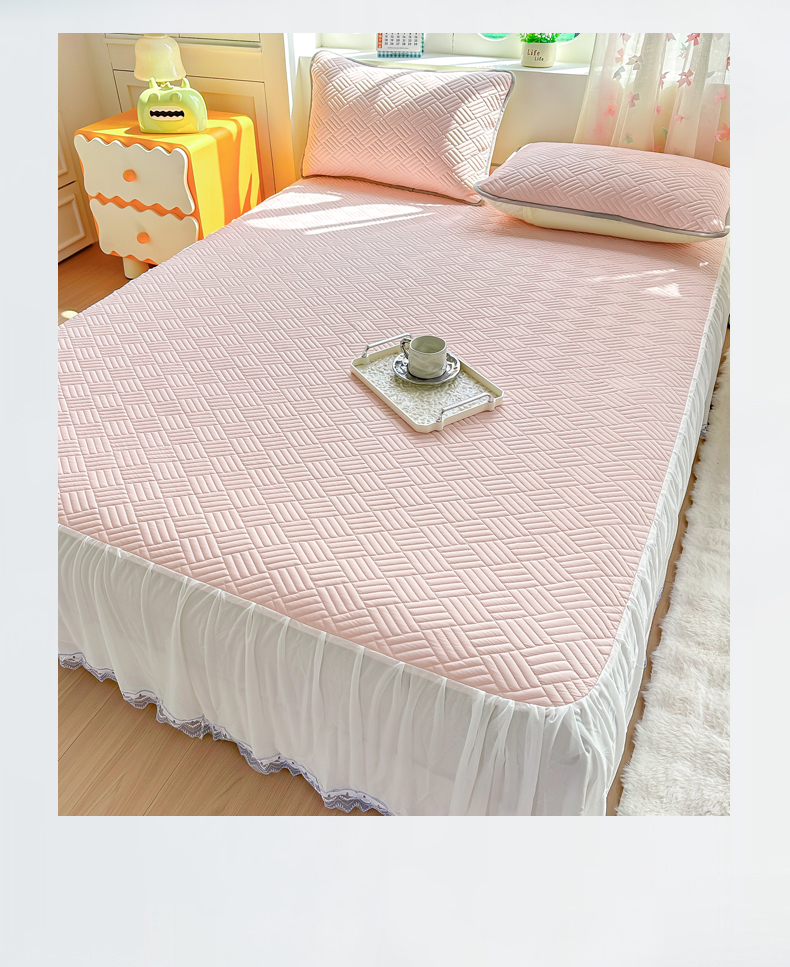 丹本家纺 2026新款凉感夏被空调被凉席空调席冰丝席纯色床裙乳胶席三件套四件套菱形格 菱形格床裙款-粉色
