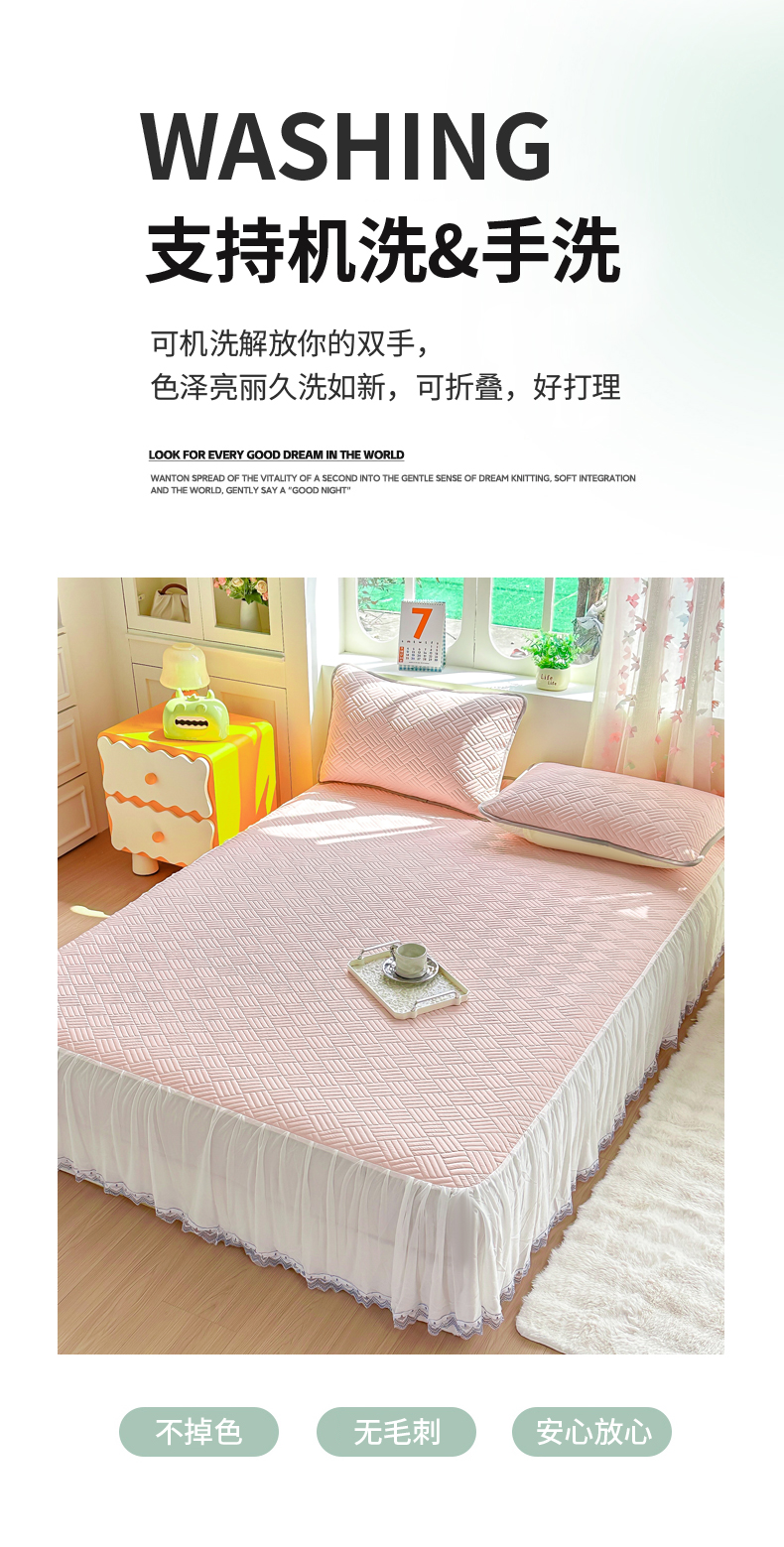 当前位置: 91家纺网 > 商品网购 > 床上用品 > 凉席 > 丹本家纺 2026新款凉感夏被空调被凉席空调席冰丝席纯色床裙乳胶席三件套四件套菱形格 菱形格床裙款-粉色