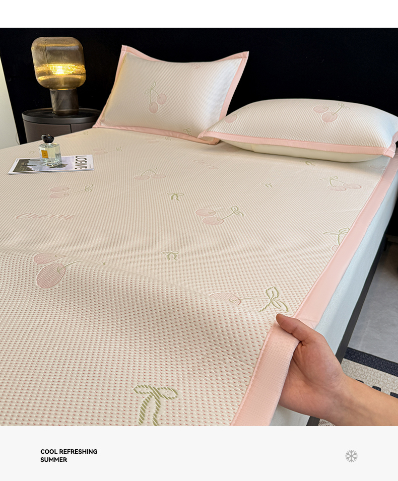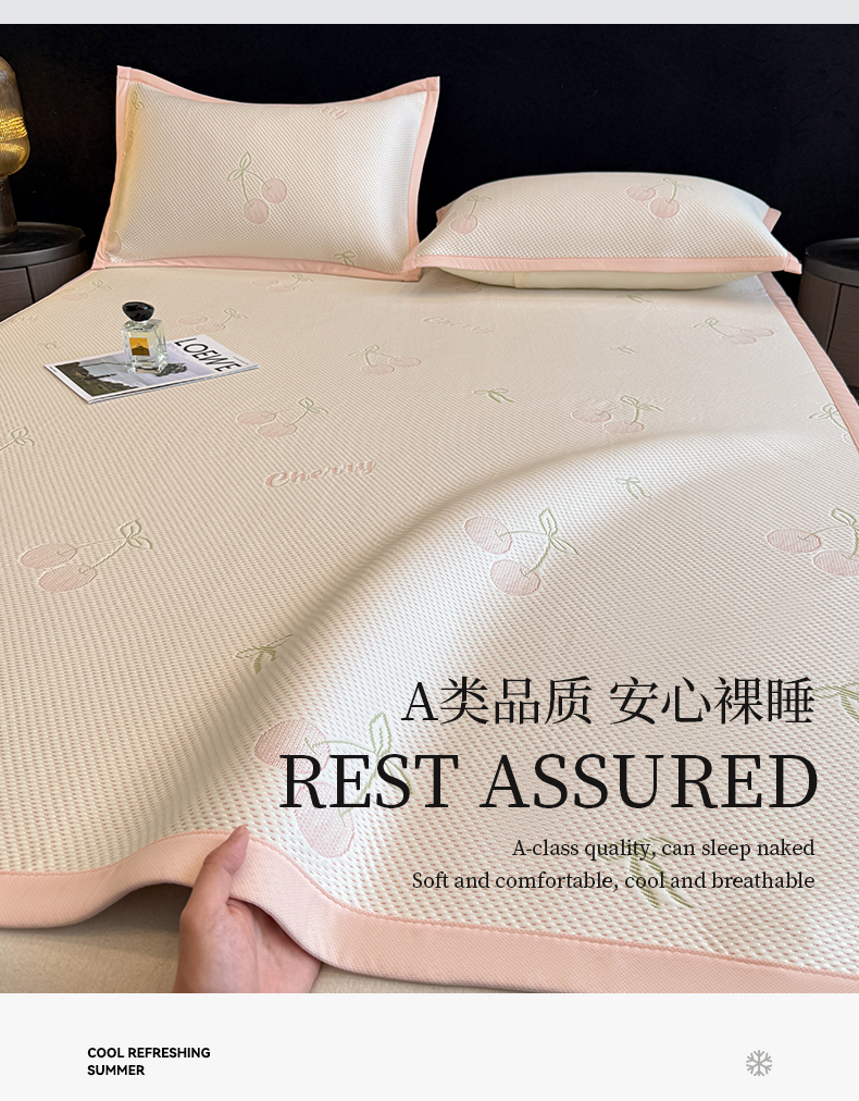 商品名称:畅畅家纺 2026春夏新款复合中分子PE100%聚乙烯乙纶色织提花凉感软凉席席子 樱桃