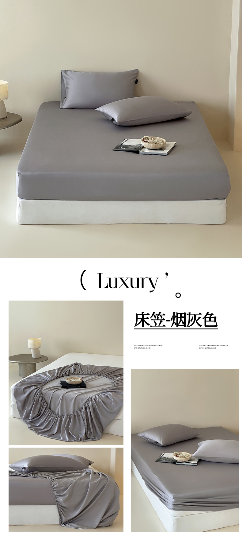 (总)三味舒屋 2026新款凉风小奢绸60S兰精天丝纯色单品系列-单床单床单单件,极光蓝,斯卡其粉,象牙白,雅灰,烟灰色,珍珠白,紫铜色,组合图仅供展示-不可下单