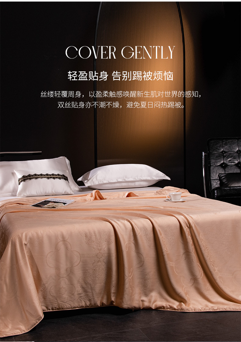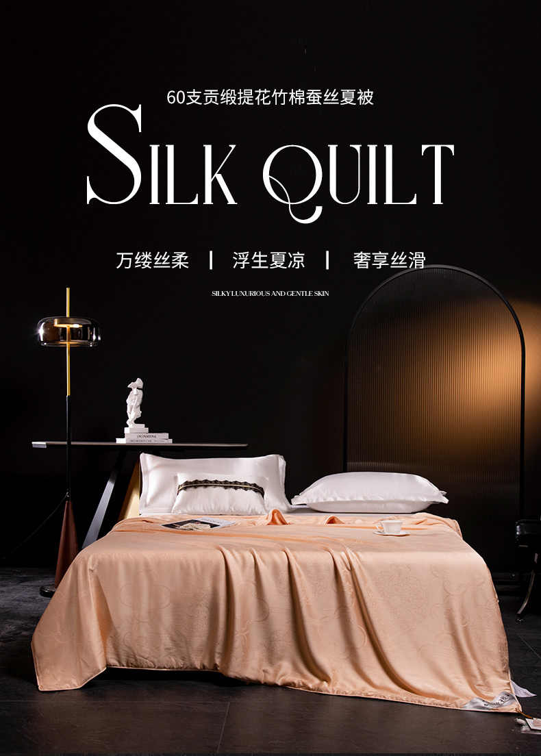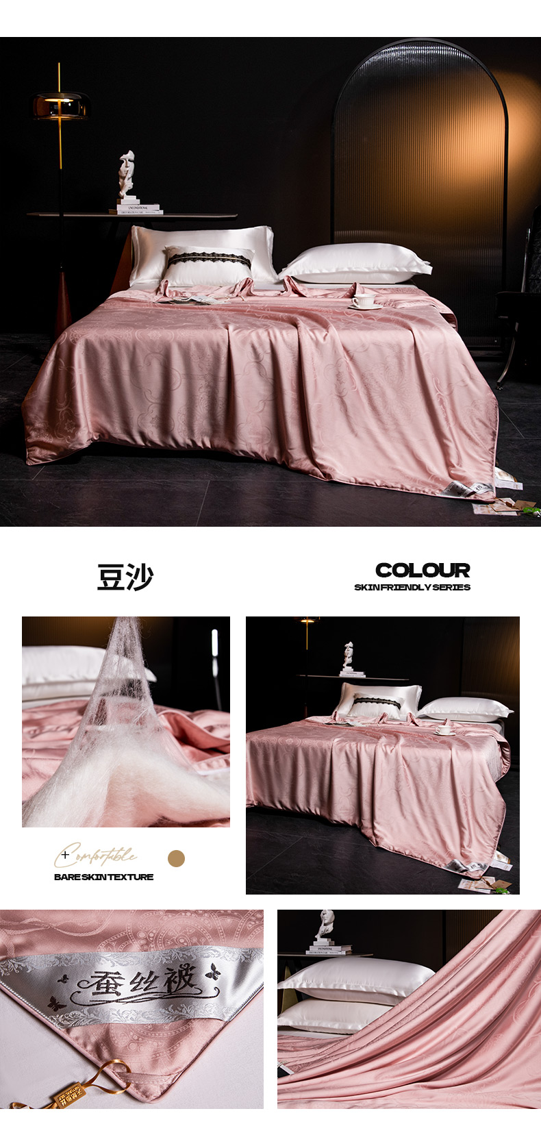 (总)合欢(原天一阁) 2026春夏新款60支贡缎提花竹棉100%蚕丝夏被春秋被,豆沙,香槟金,珍珠白