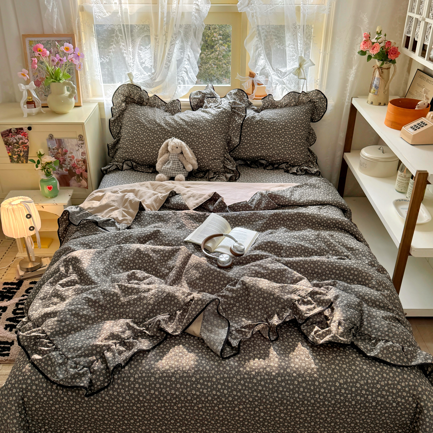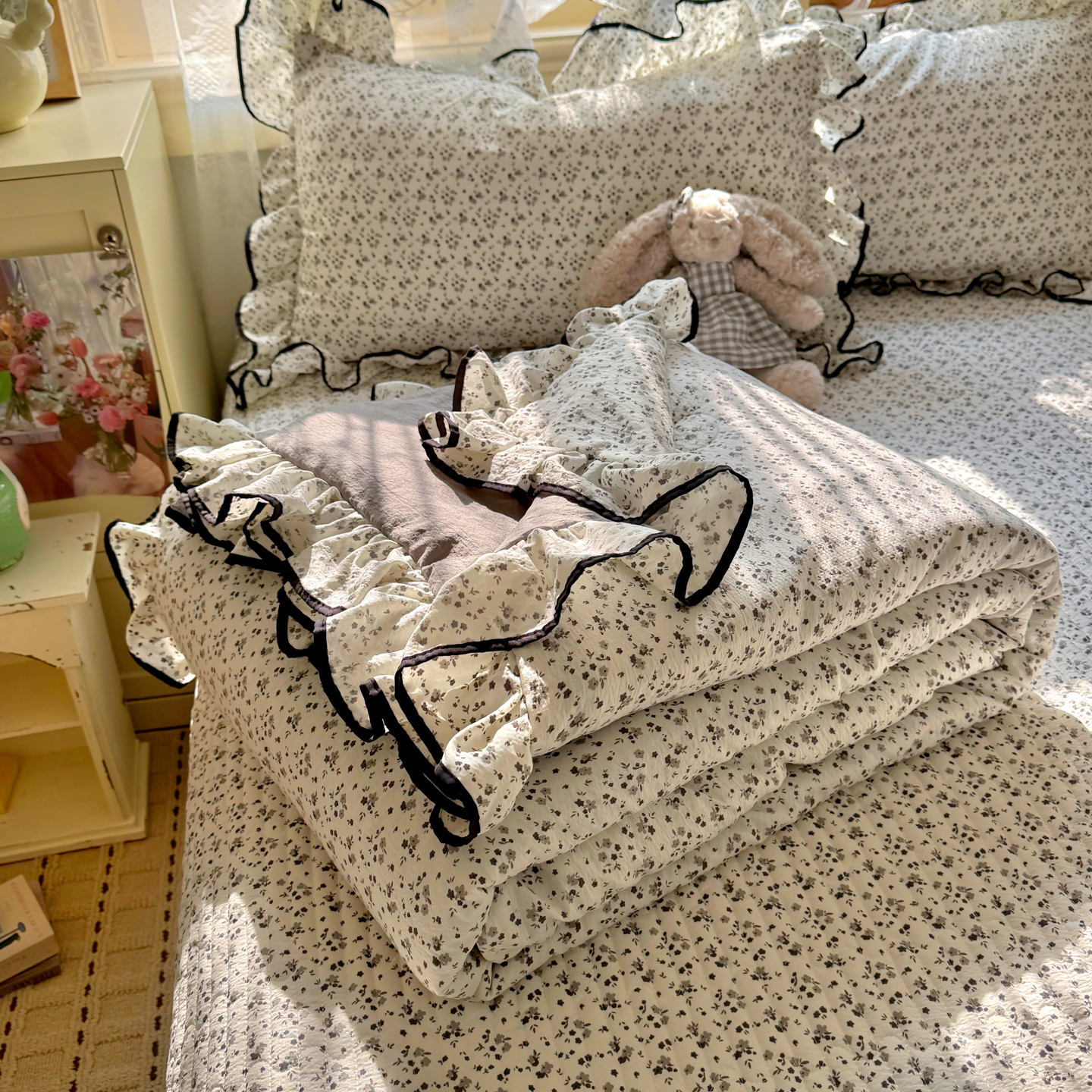 (总)阿曼达 2025新款韩系法式慵懒氛围感印花泡芙花边四件套(专版花型),樱花泡芙-黑,樱花泡芙-红,樱花泡芙-蓝,樱花泡芙-梨漫,樱花泡芙-宅妹粉