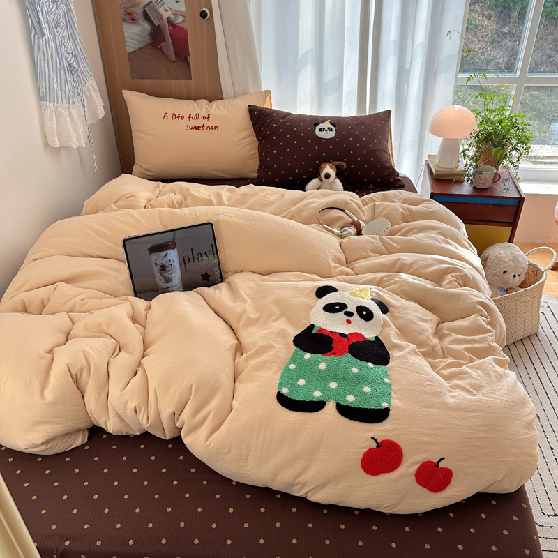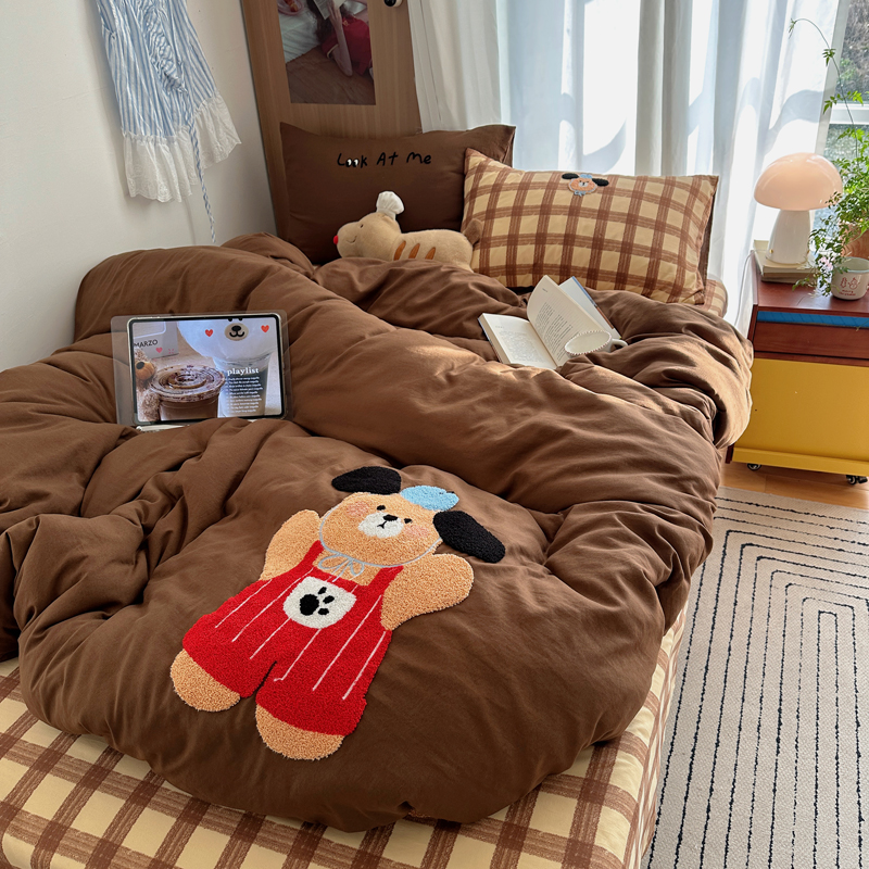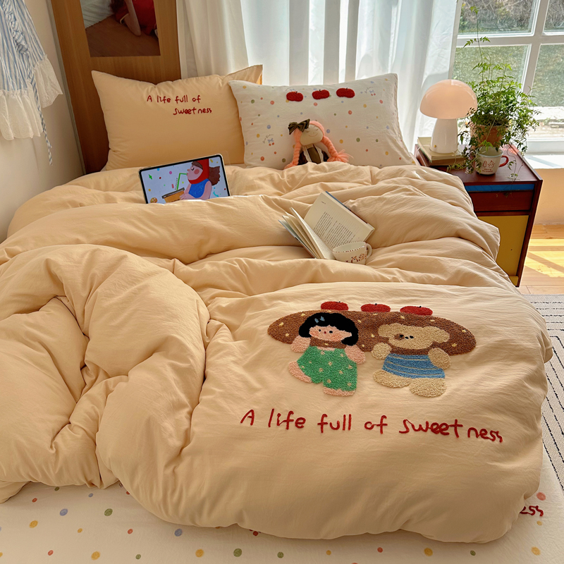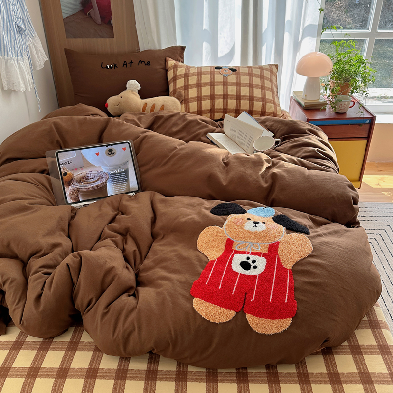 当前位置: 91家纺网 > 商品网购 > 床品套件 > 四件套 > 其它四件套 > 顾里家纺 2026新款治愈韩风毛巾绣云朵棉四件套 苹果奥利熊