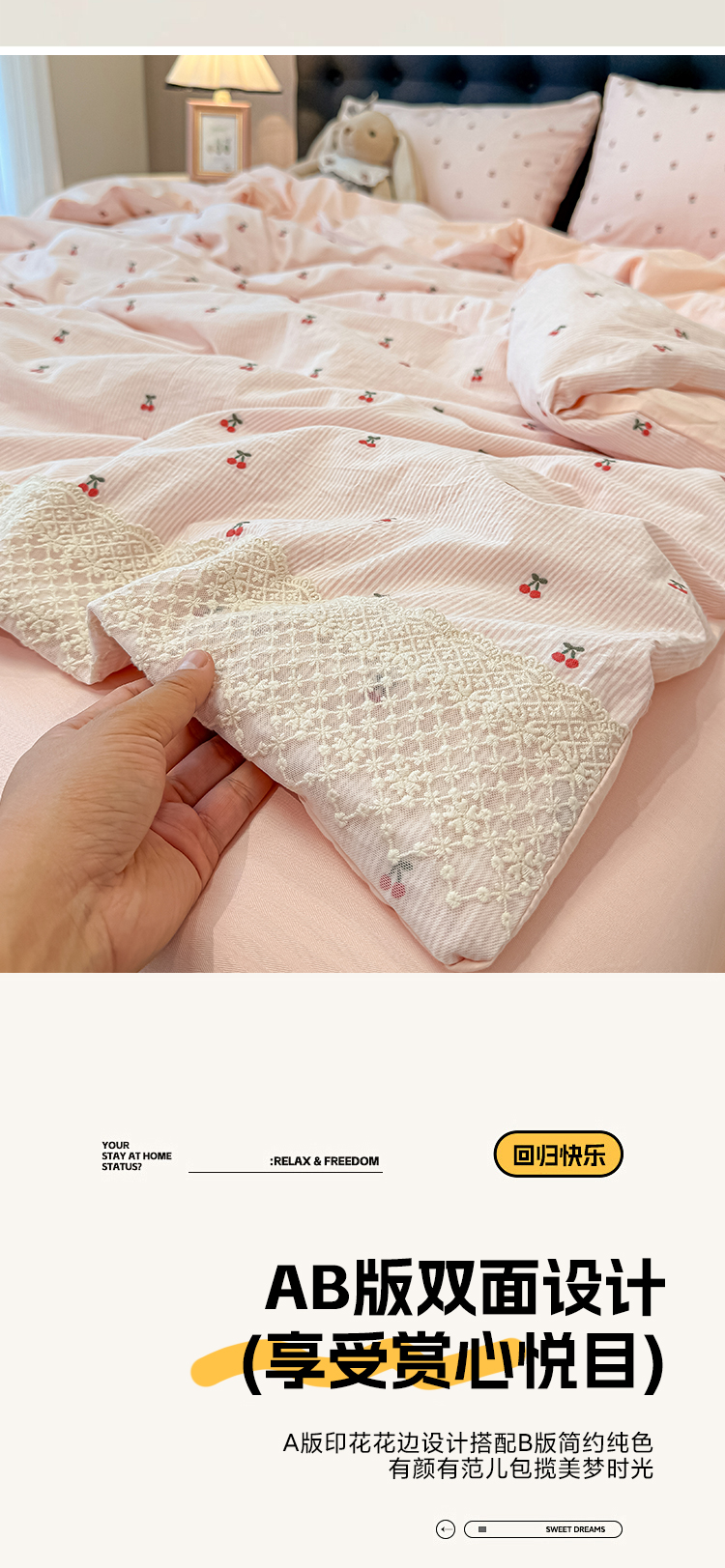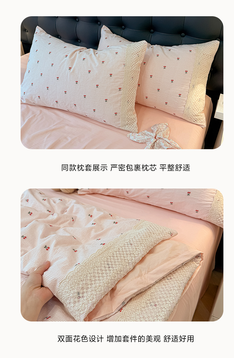当前位置: 91家纺网 > 商品网购 > 床品套件 > 四件套 > 水洗棉四件套 > 盼季家纺 2026新款水洗棉印花法式高定小碎花蕾丝花边四件套 法式高定花边-春桃