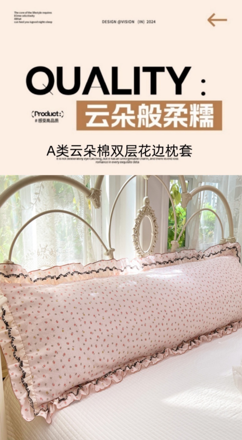 (总)梦舒羽 2026新款A类云朵棉蕾丝双层花边枕套加长双人情侣1.8米枕芯内胆套1.5m枕头,樱桃花语,浮影,花时令,花田洛,蓝岛风铃,黎梦,绿涧,苏颜粉,幸运熊,旋转木马