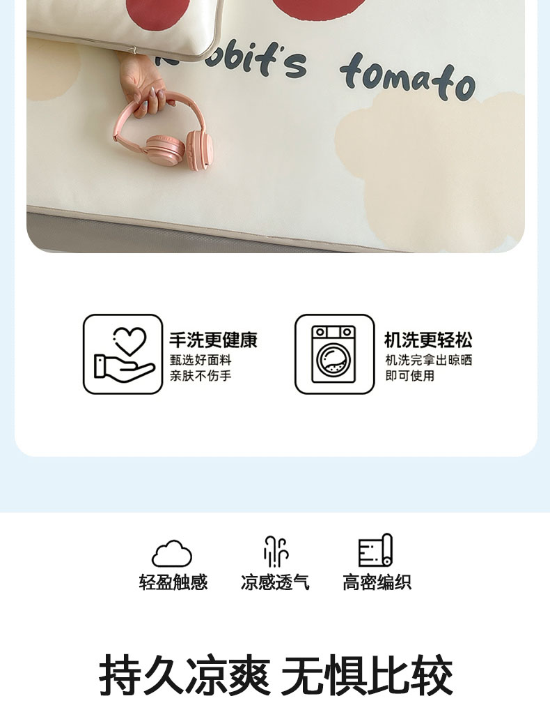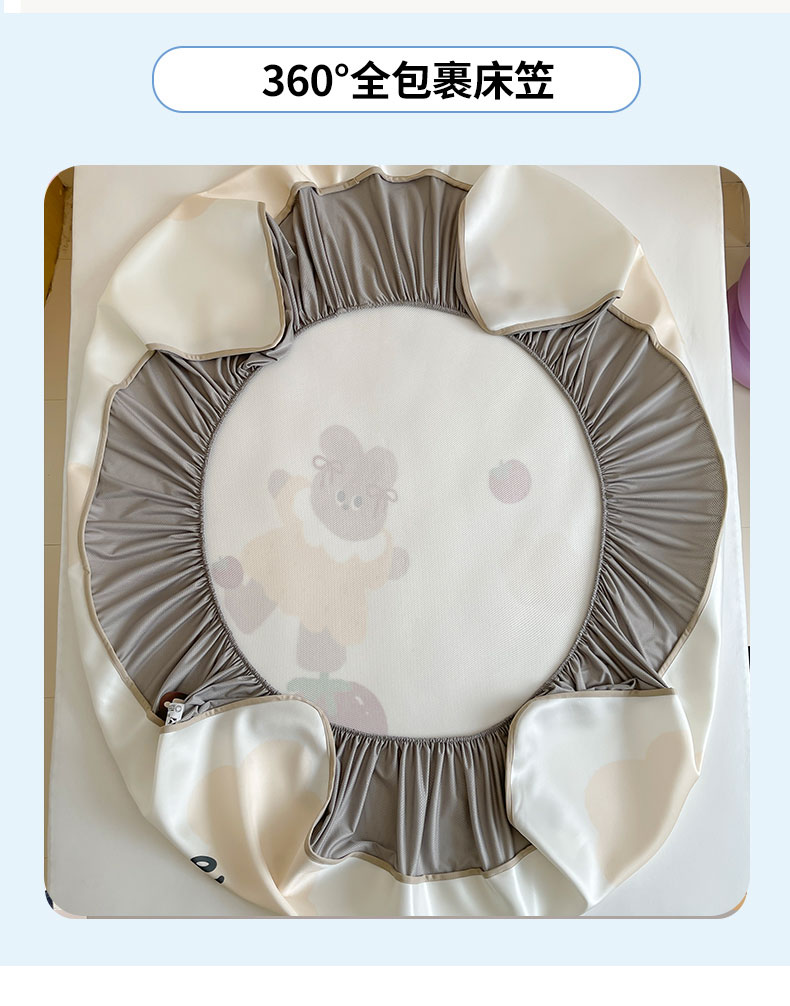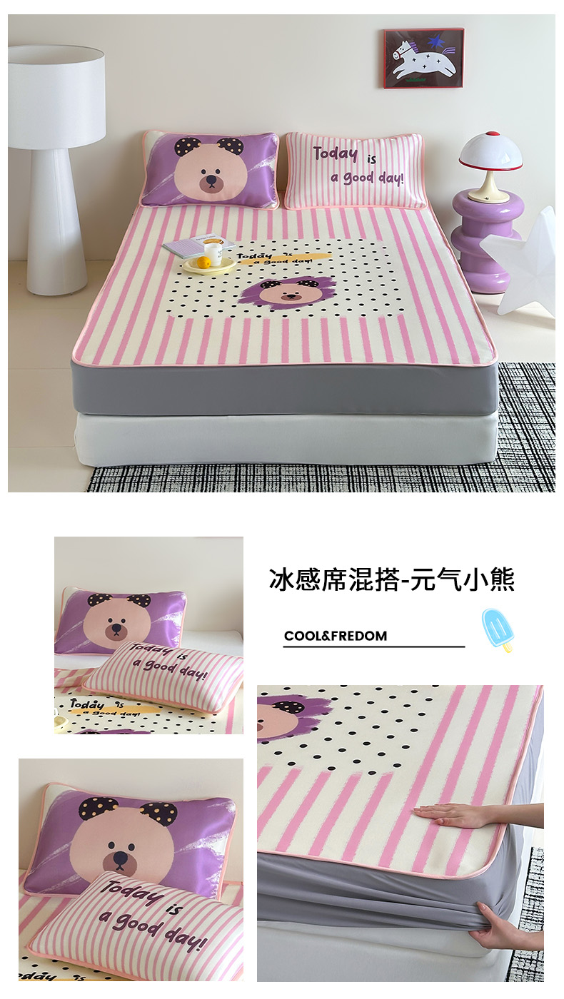 床上用品 > 凉席 > (总)桃子家居 2026新款A类ins博主卡通数码印花高级品质撞色中分子1200D冰感丝凉感席冰丝三件套平铺床笠系列