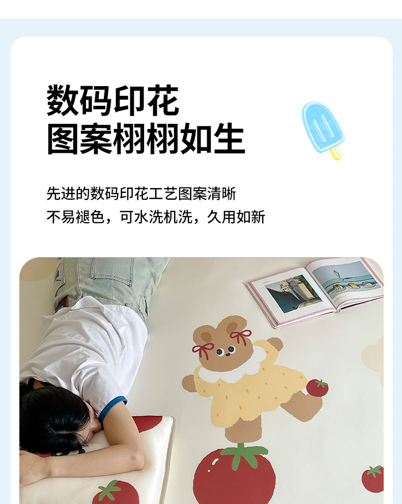 商品名称:(总)桃子家居 2026新款A类ins博主卡通数码印花高级品质撞色中分子1200D冰感丝凉感席冰丝三件套平铺床笠系列