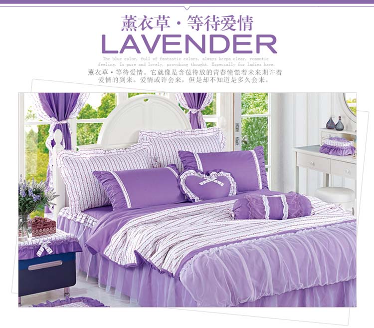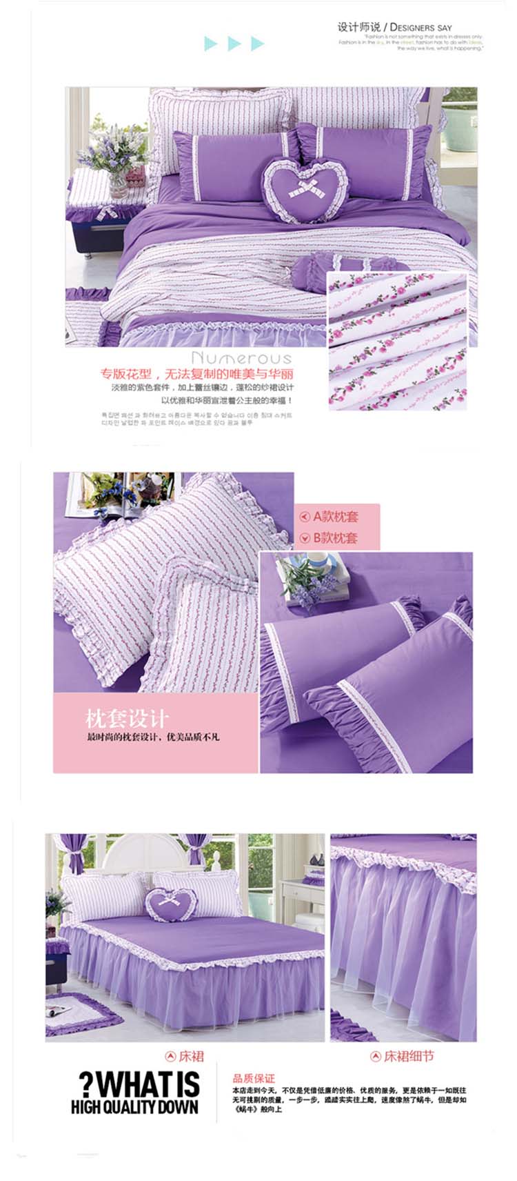 菊上家纺 全棉13372韩版蕾丝床裙四件套紫色迷情