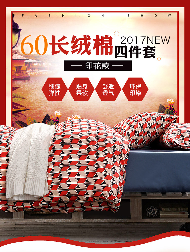 当前位置: 91家纺网 > 商品网购 > 床品套件 > 四件套 > 长绒棉四件套 > 太古汇家居 60长绒棉(印花)四件套 奥格TGH002