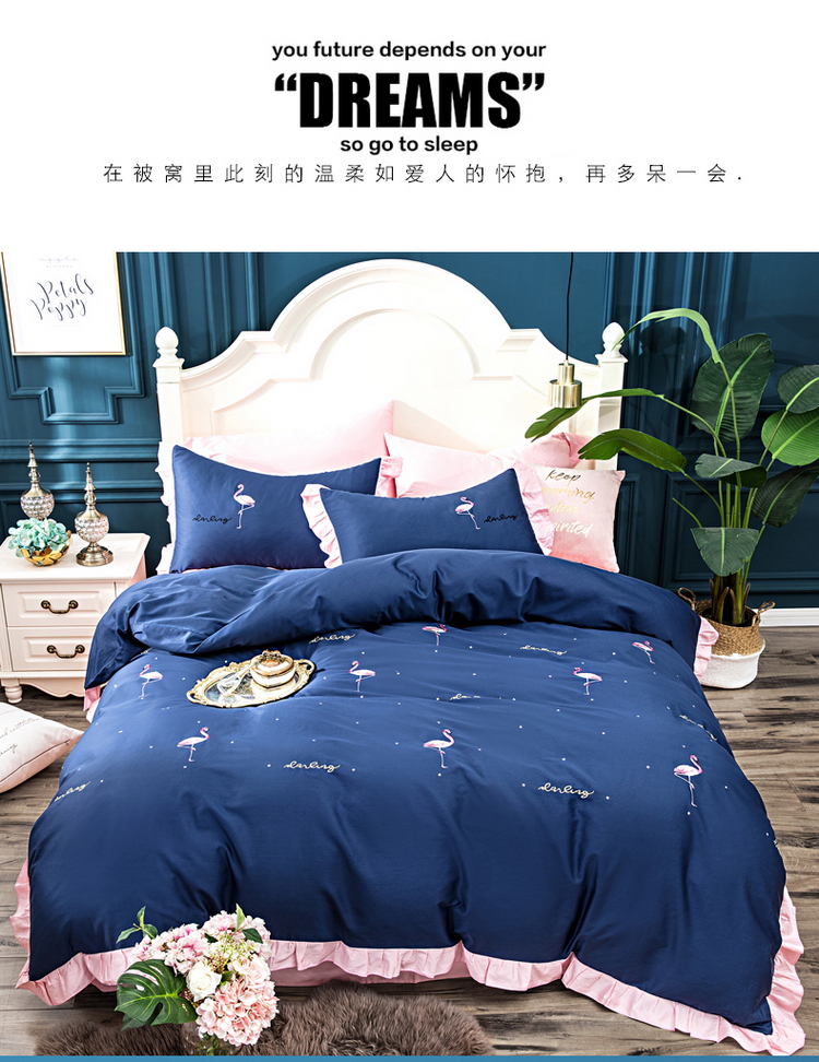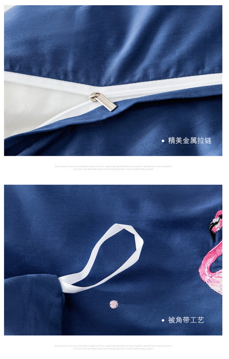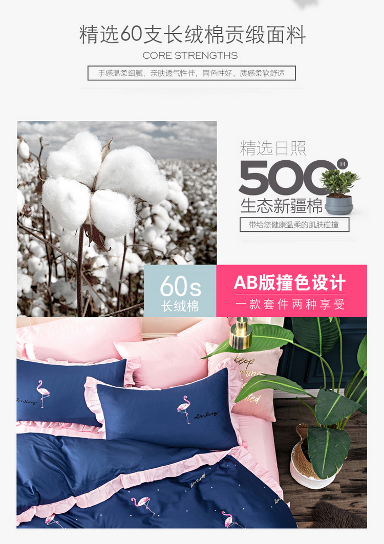 商品名称:久典家居 新品60S贡缎长绒棉火烈鸟绣花款四件套 遇见-兰