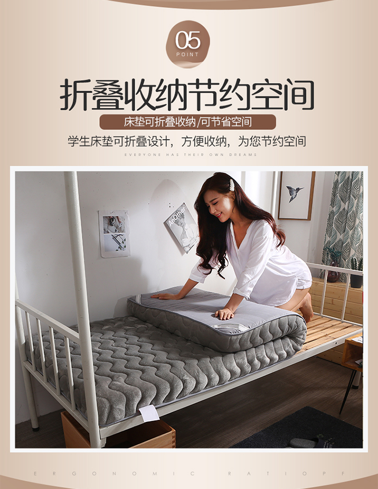商品名称:欣罗兰 2022新款单边学生法莱绒床垫 卡其灰