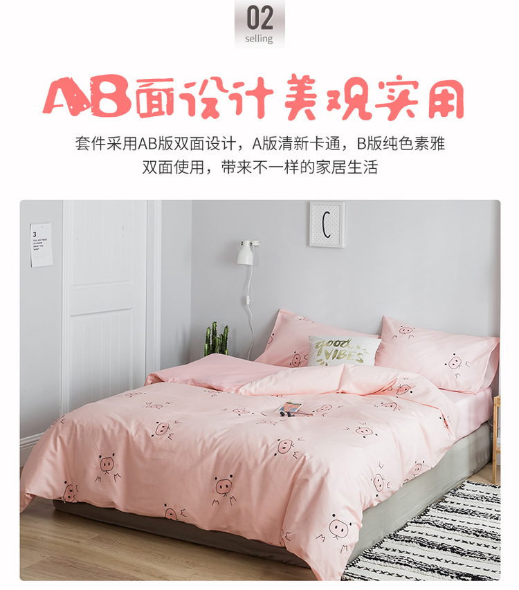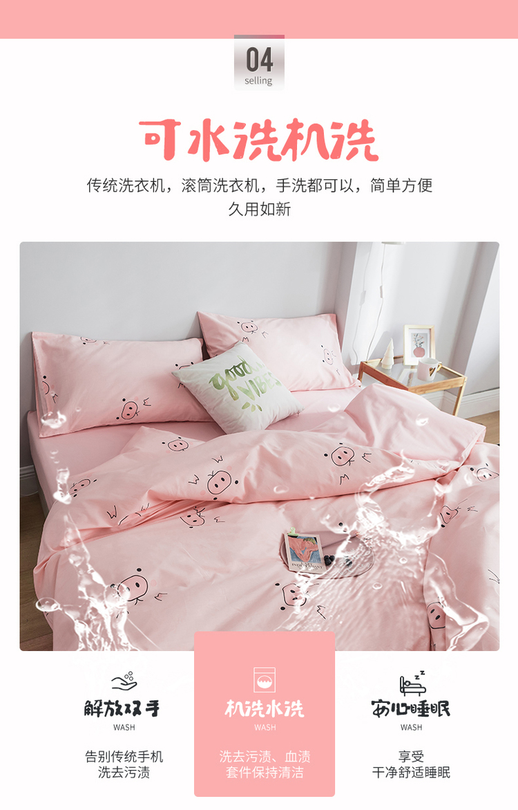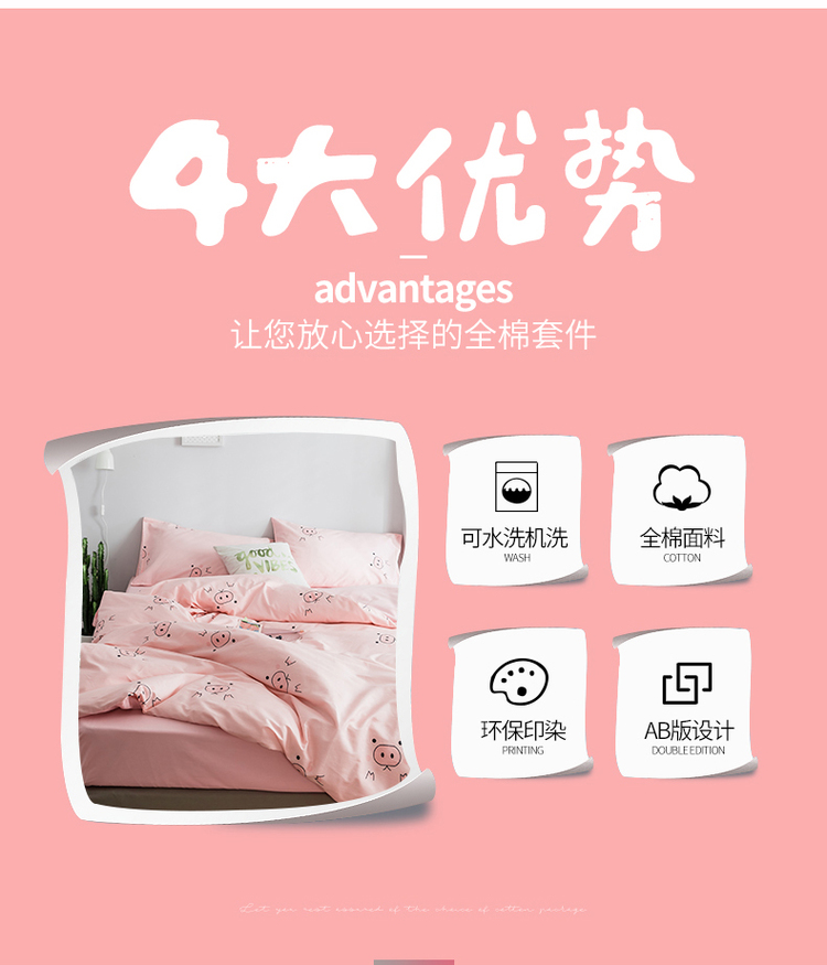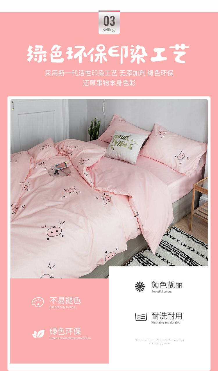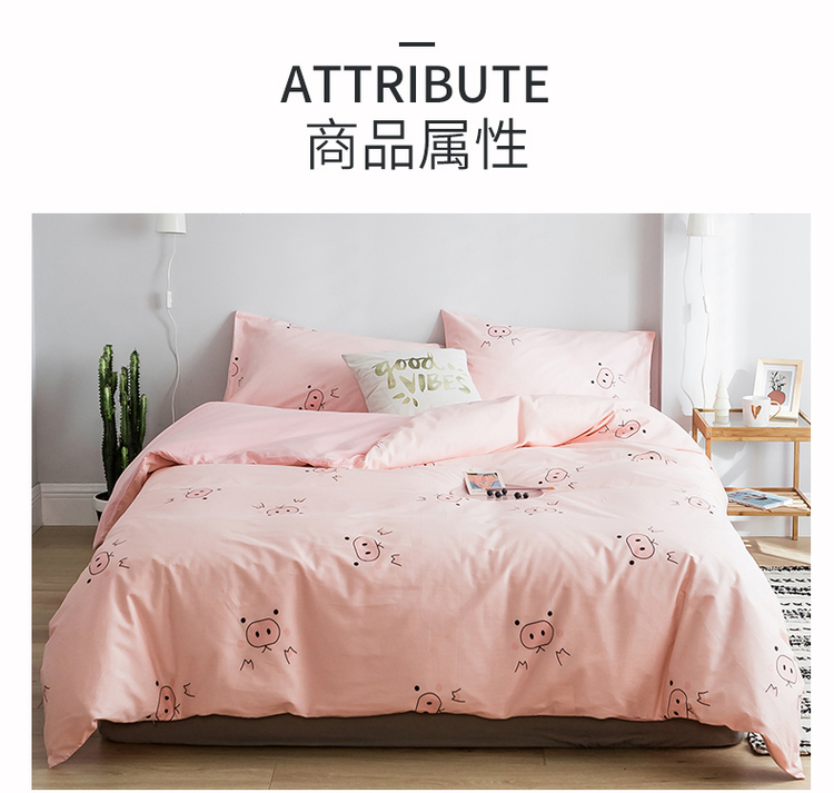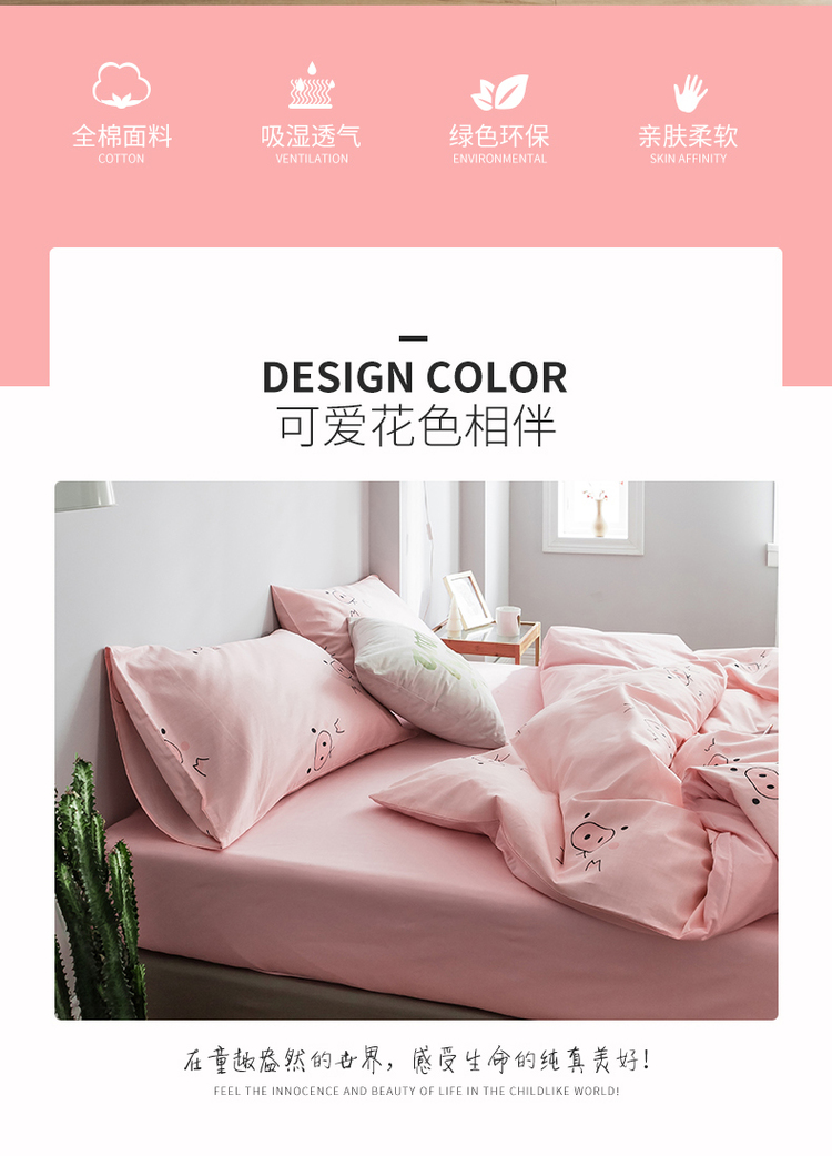 商品名称:棉生活 2019新款13372萌系小清新四件套床单款奶油小猪