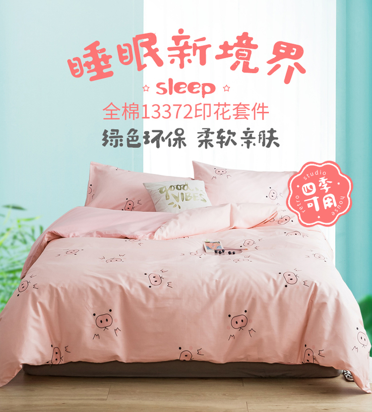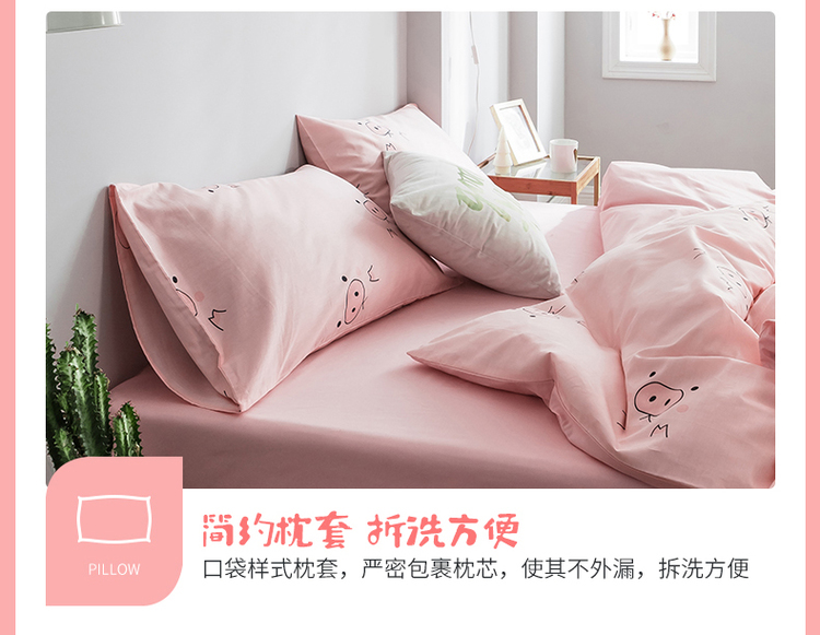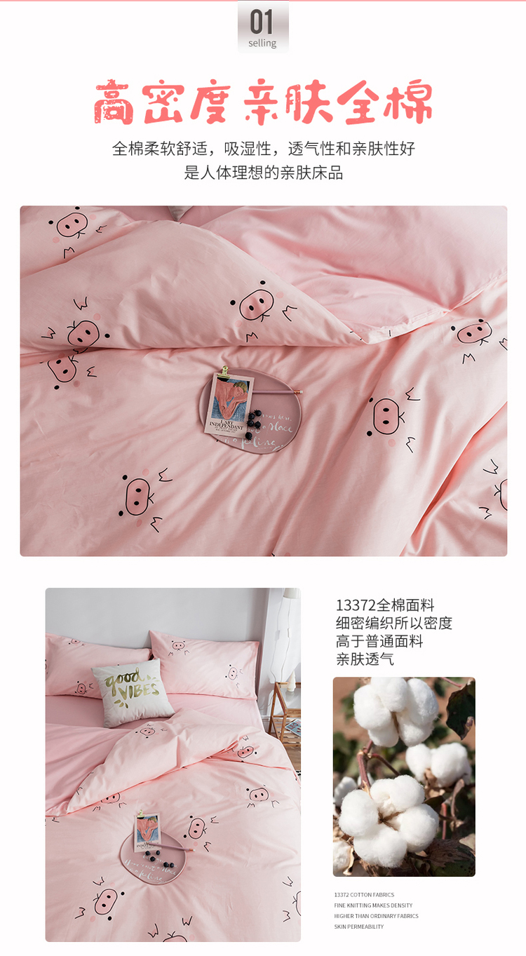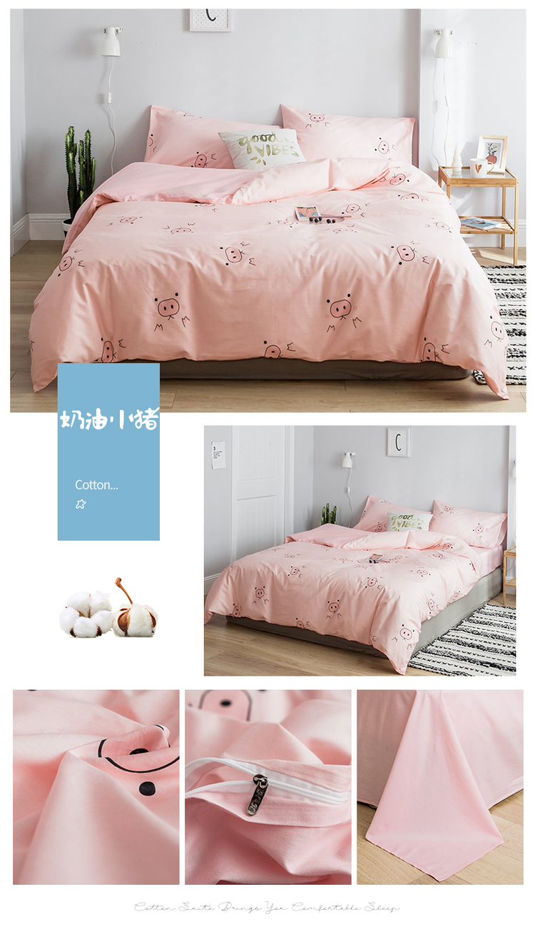 棉生活 2019新款13372萌系小清新四件套床单款奶油小猪