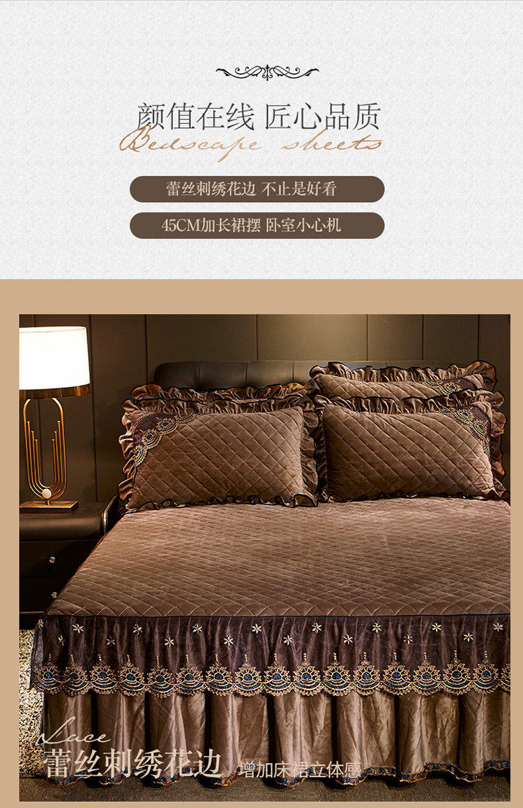 宜凡家纺 2019新款繁华似锦系列单品床裙三边繁华似锦-咖啡
