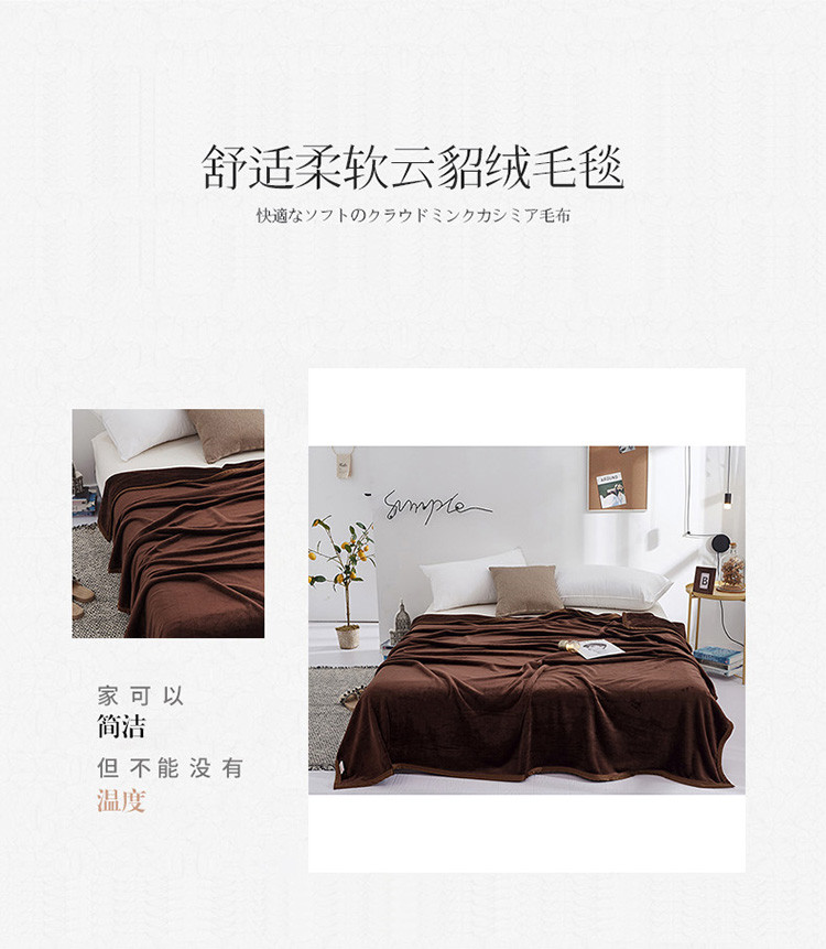 商品名称:羋多家纺 2023新款云貂绒系列毛毯 深咖啡
