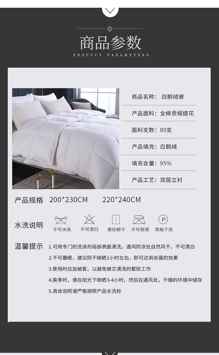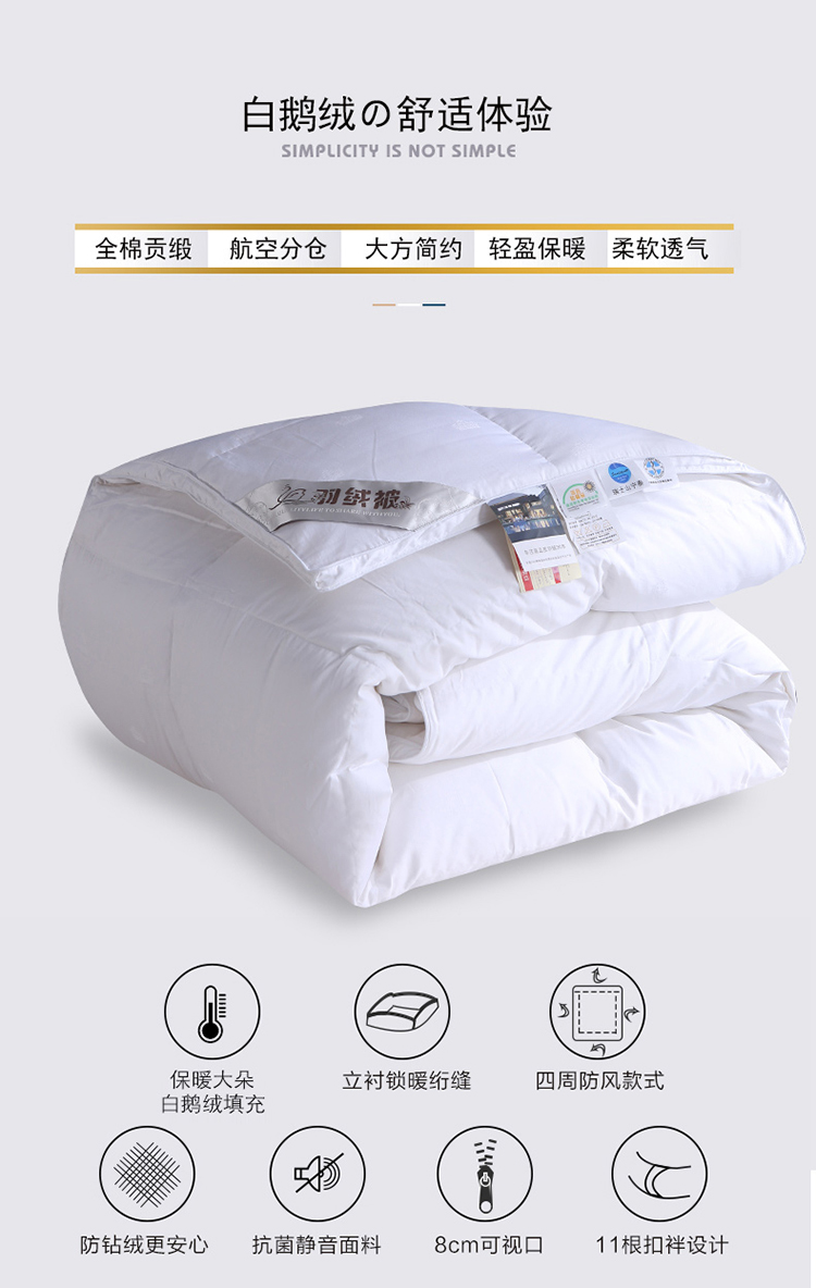 商品名称:绒研羽绒 2025新品皇冠羽绒被全棉贡缎提花 白色
