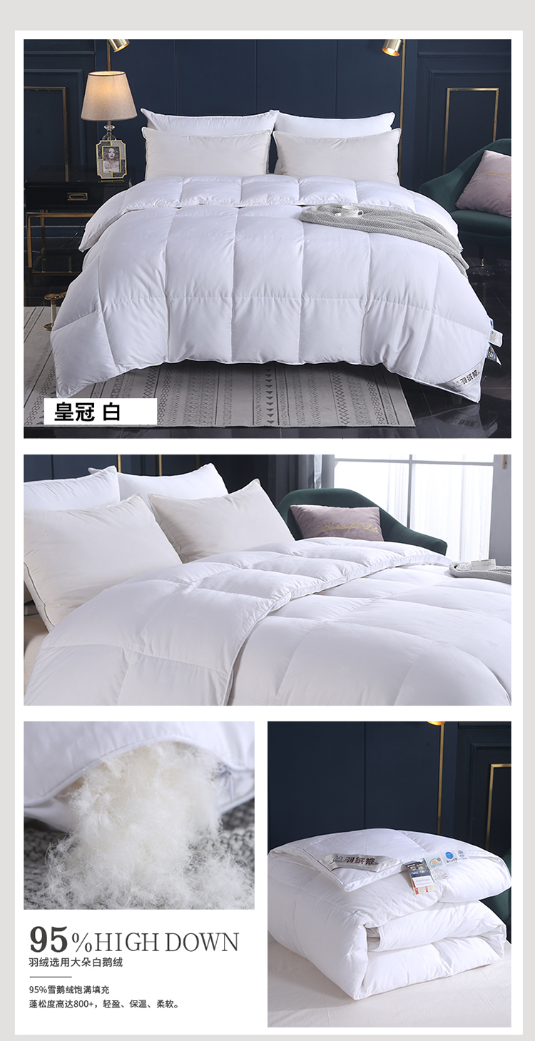 绒研羽绒 2025新品皇冠羽绒被全棉贡缎提花 白色