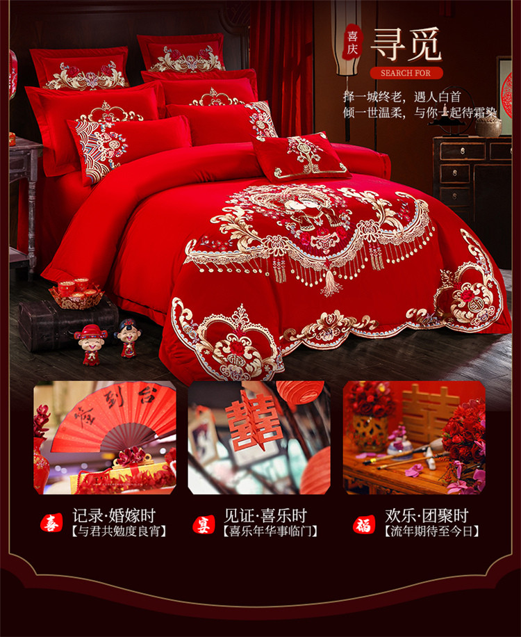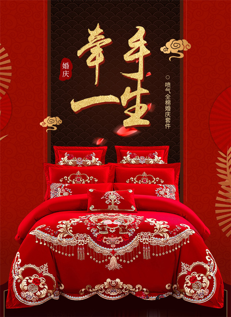(总)千禧家纺 2024新款双面长绒棉磨毛加厚保暖绣花婚庆套件,大喜大吉,鸿运贺禧,欢乐喜事,欢喜,美满爱情,喜上眉梢,喜约,相伴一生,挚爱