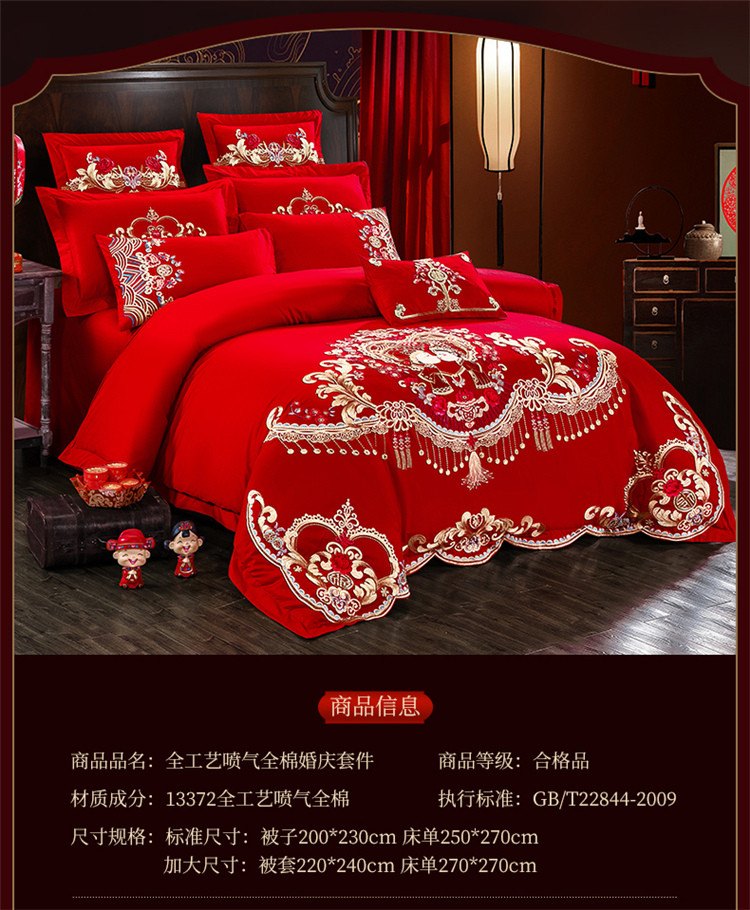(总)千禧家纺 2024新款双面长绒棉绣花婚庆多件套,百子兴旺,鸿运双喜,花开富贵,江山美人,龙凤团圆,玫瑰恋人,皇家龙凤