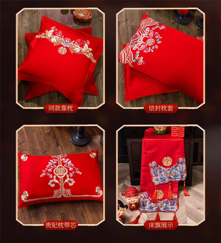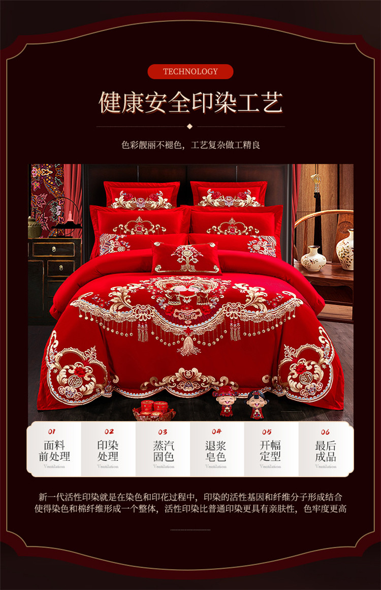 千禧 2024新款贡缎磨毛婚庆绣花多件套 盛世华庭(彩色绣),盛世华庭(彩色绣)