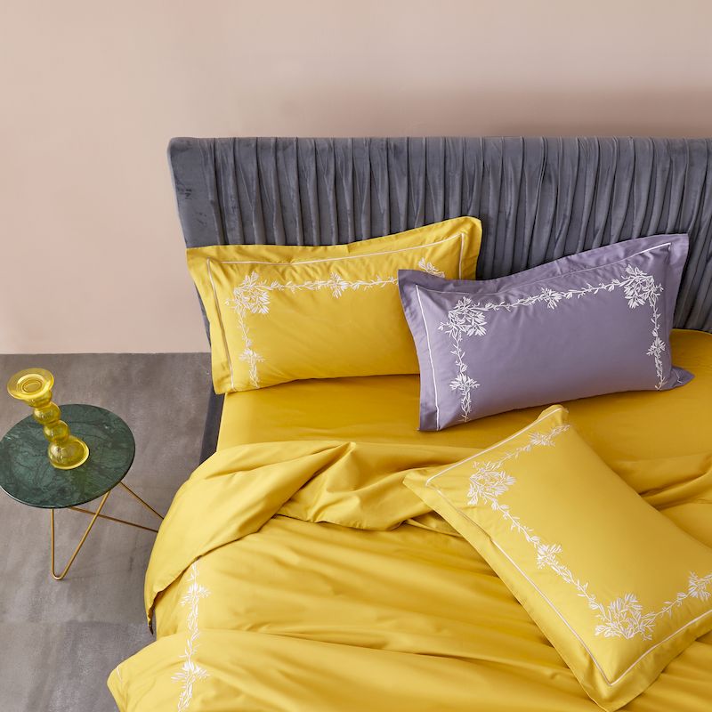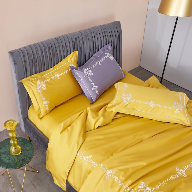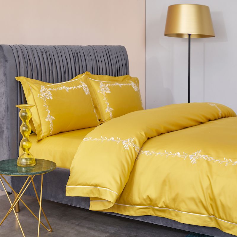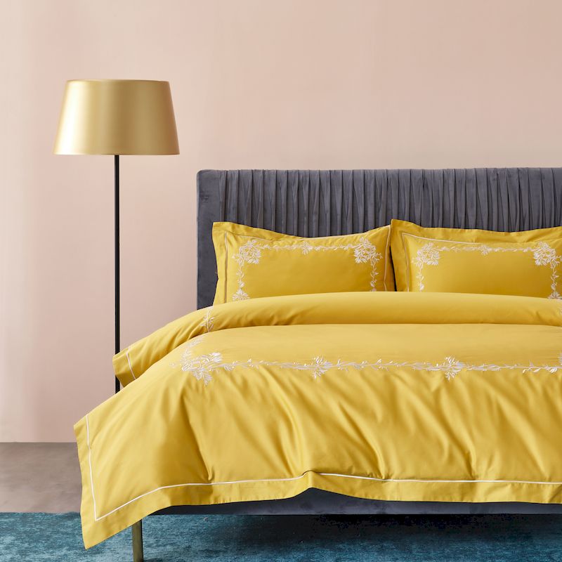 涞澳 2019新款50套框绣花四件套 栀子黄