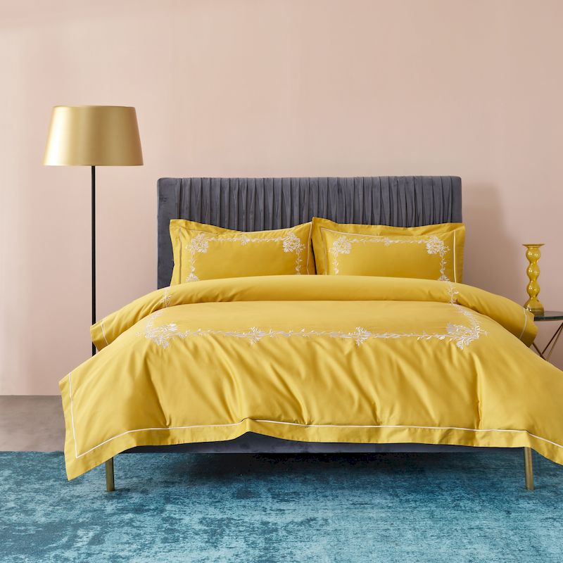 商品名称:涞澳 2019新款50套框绣花四件套 栀子黄