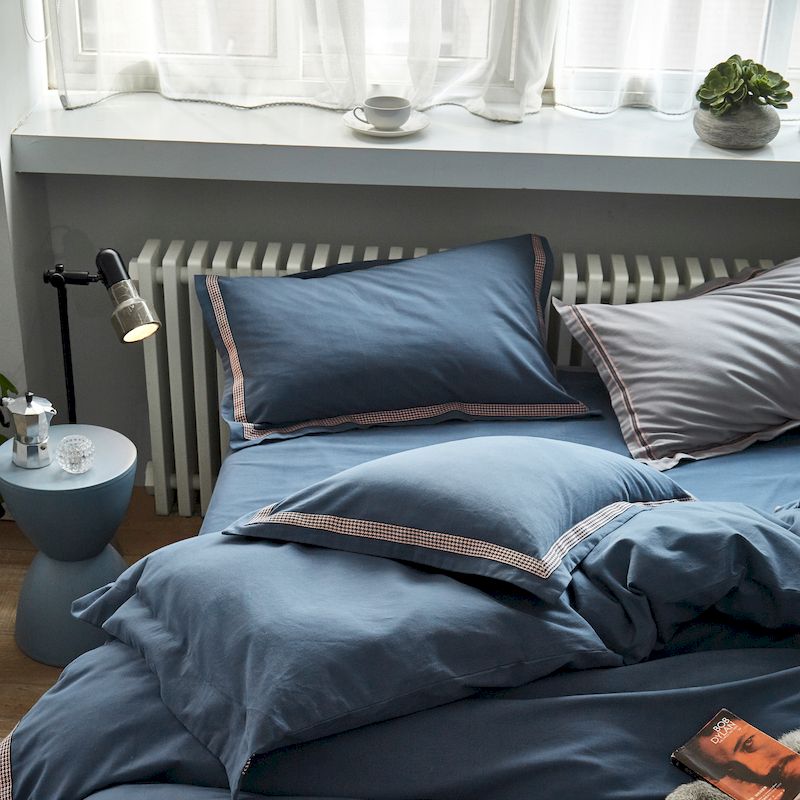 商品名称:涞澳家纺 2019新款2121磨毛素色带边款四件套 若余
