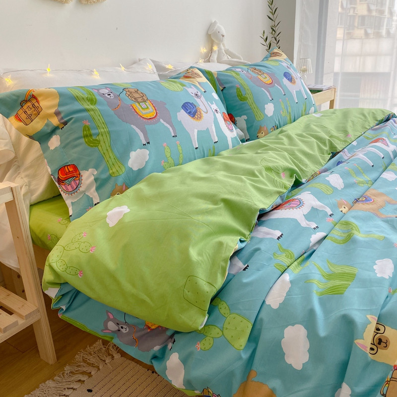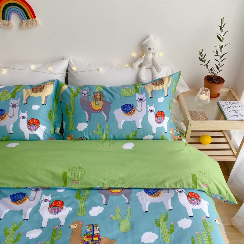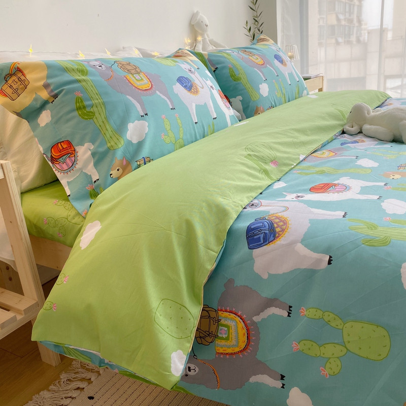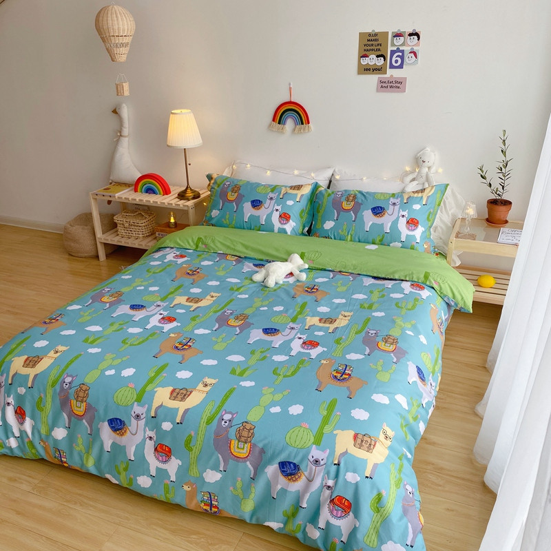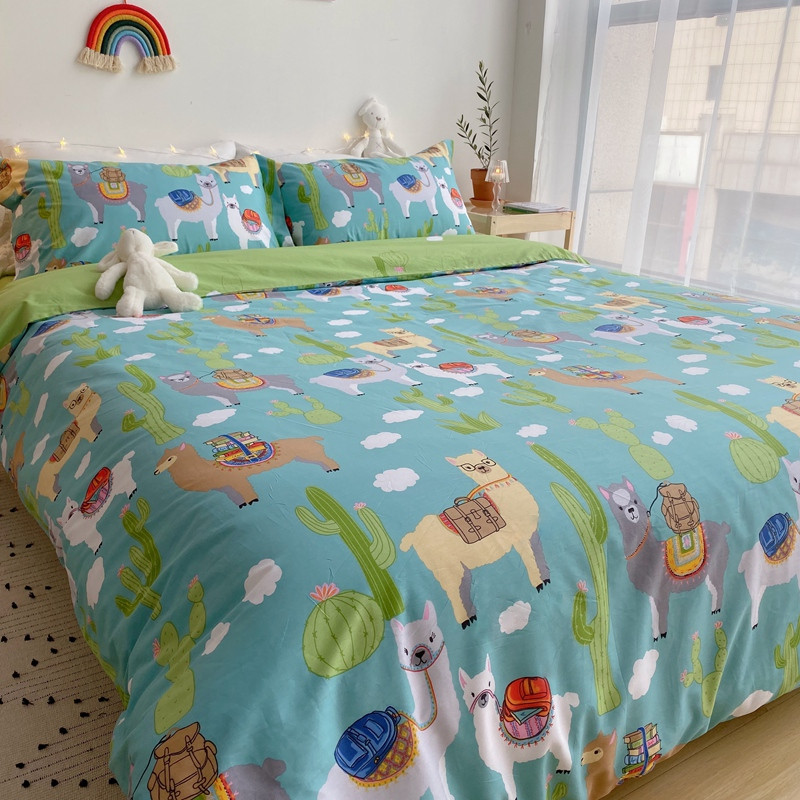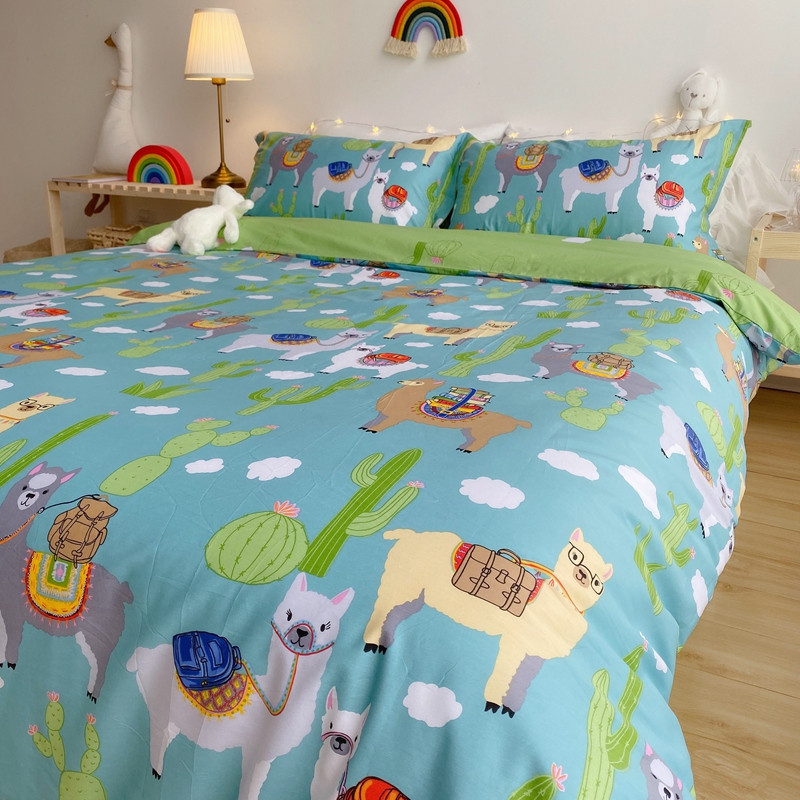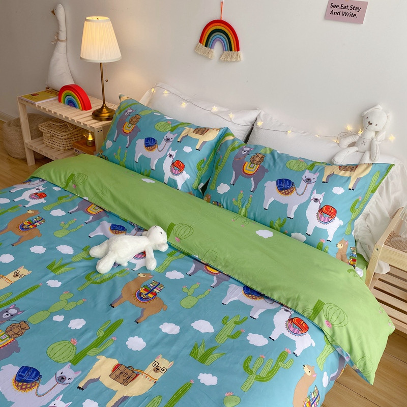 窝米 2020春夏新品-萌系卡通风系列四件套 可爱羊驼蓝