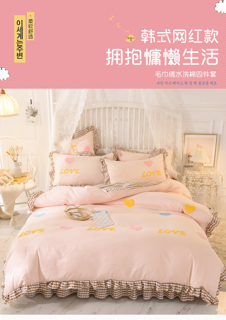 当前位置: 91家纺网 > 商品网购 > 床品套件 > 四件套 > 全棉普通四件套 > 欧冠家纺 2020新款毛巾绣色织四件套 倾心-玉色