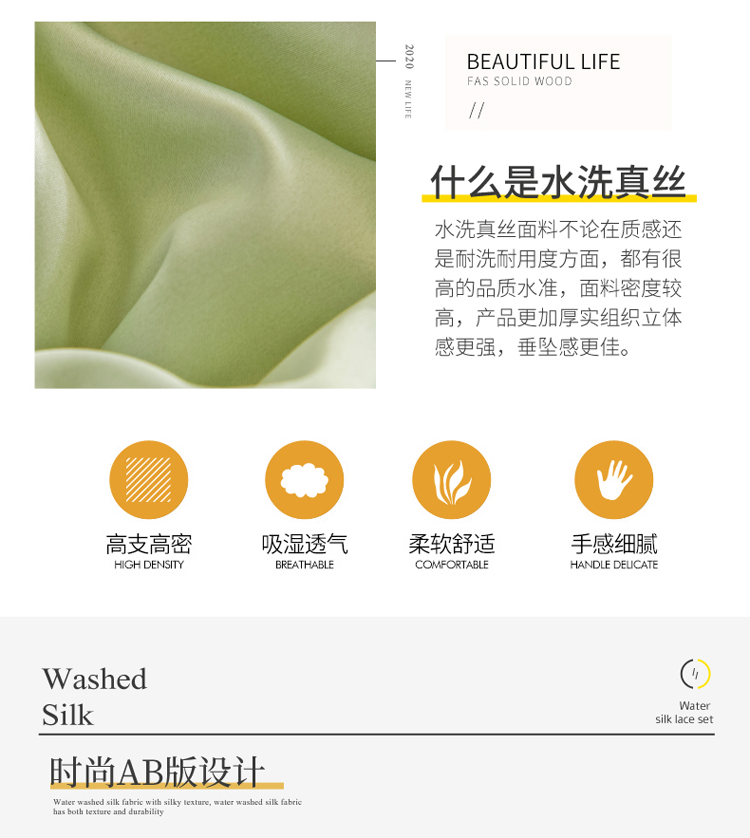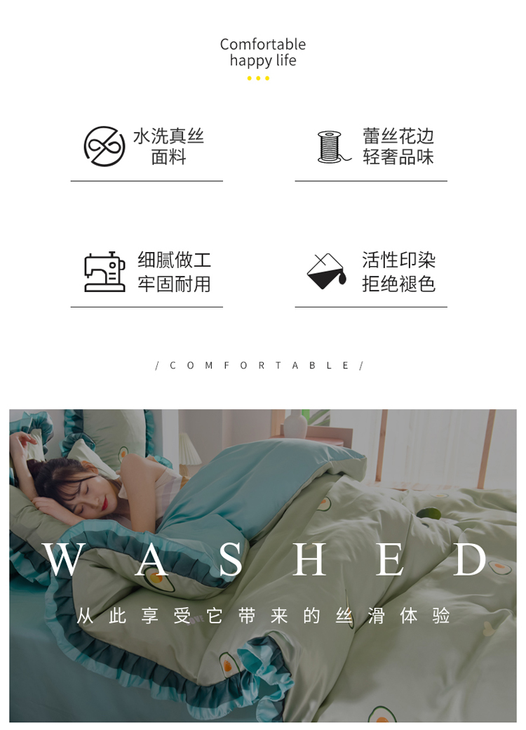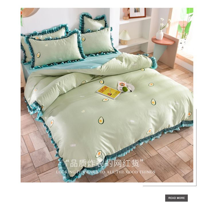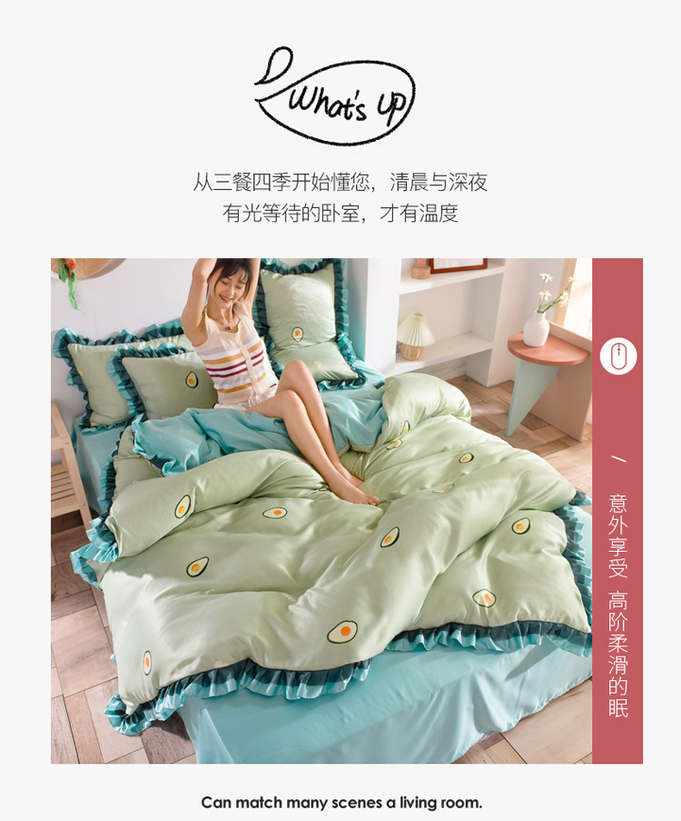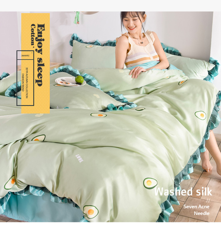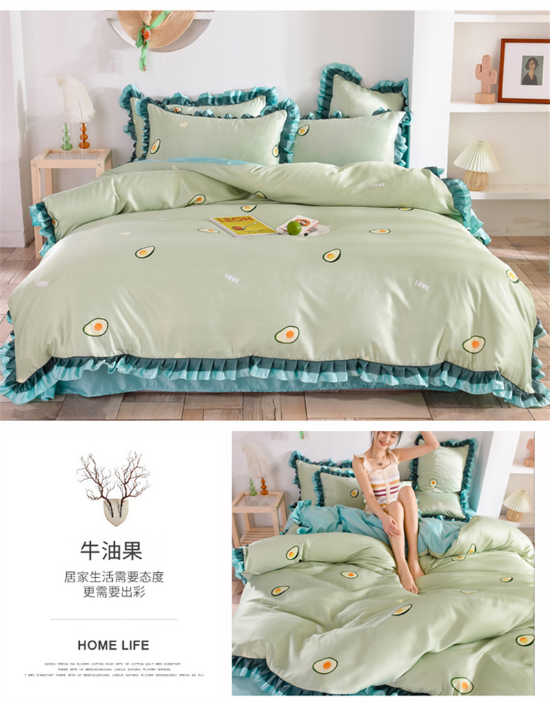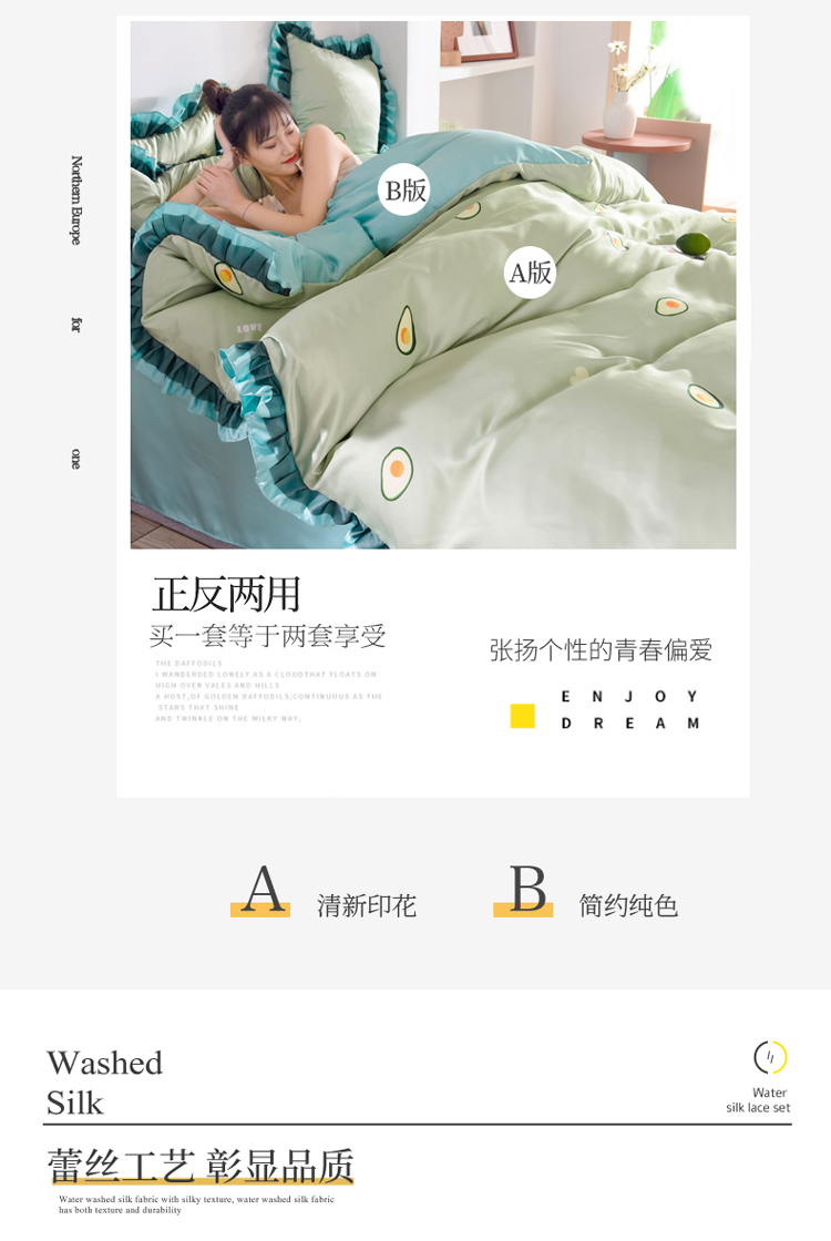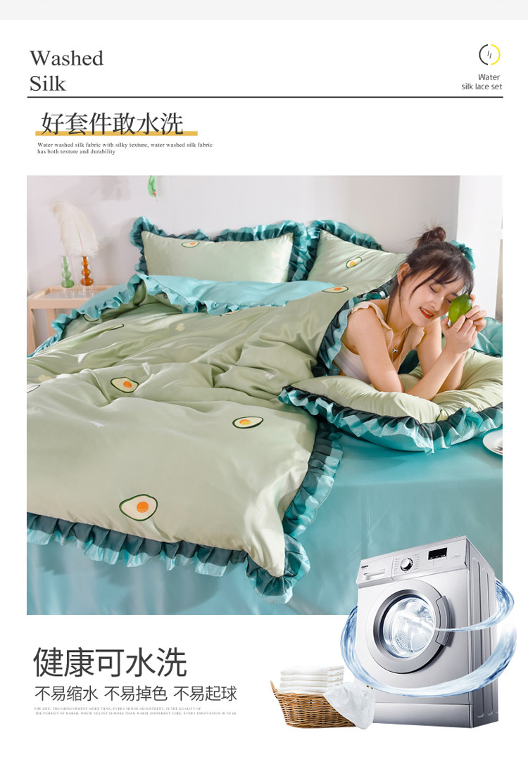 商品名称:欧冠 2020新款水洗真丝蕾丝花边款四件套 牛油果